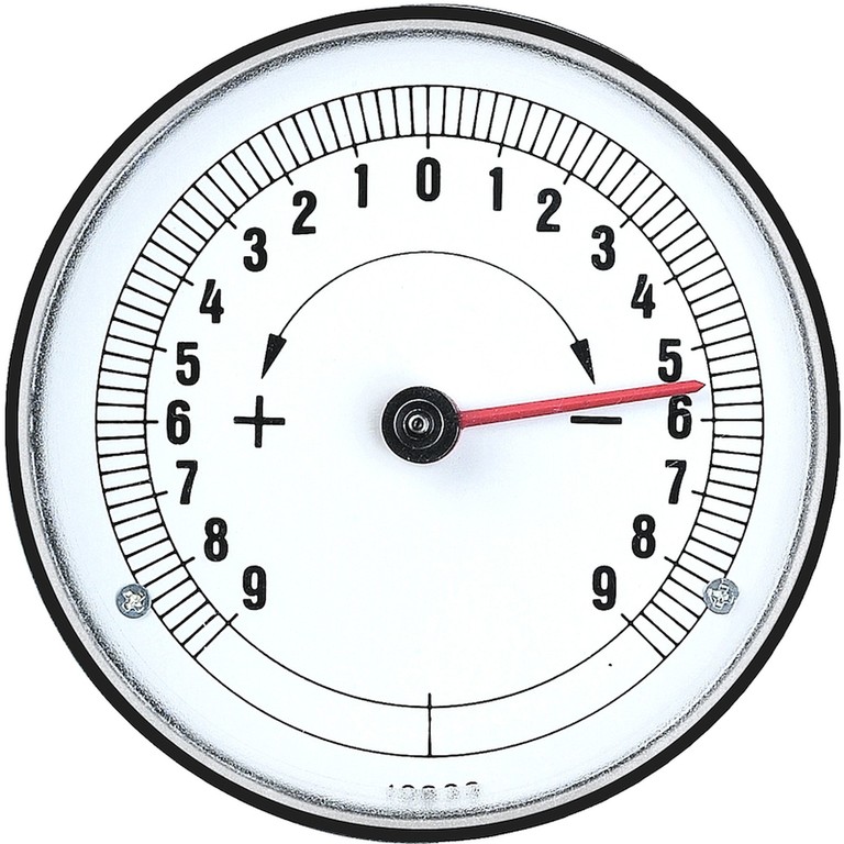 Feketén nyomtatott beosztásos skála. Standard beosztásnál a skála eleje és vége a kiválasztott áttételi viszonnyal kombinált. Például 20-as áttételi viszony esetében a skála első száma 0, az utolsó szám pedig 20. A számok haladása jobbra vagy balra a kiválasztott forgásiránytól függően.