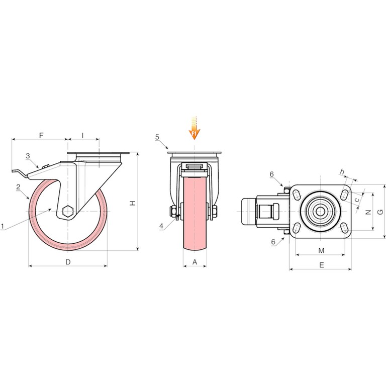 POLIAMID / POLIURETÁN KERÉK NÉGYSZÖGLETES FORGATHATÓ ROZSDAMENTES ACÉLLEMEZZEL, FÉKKEL