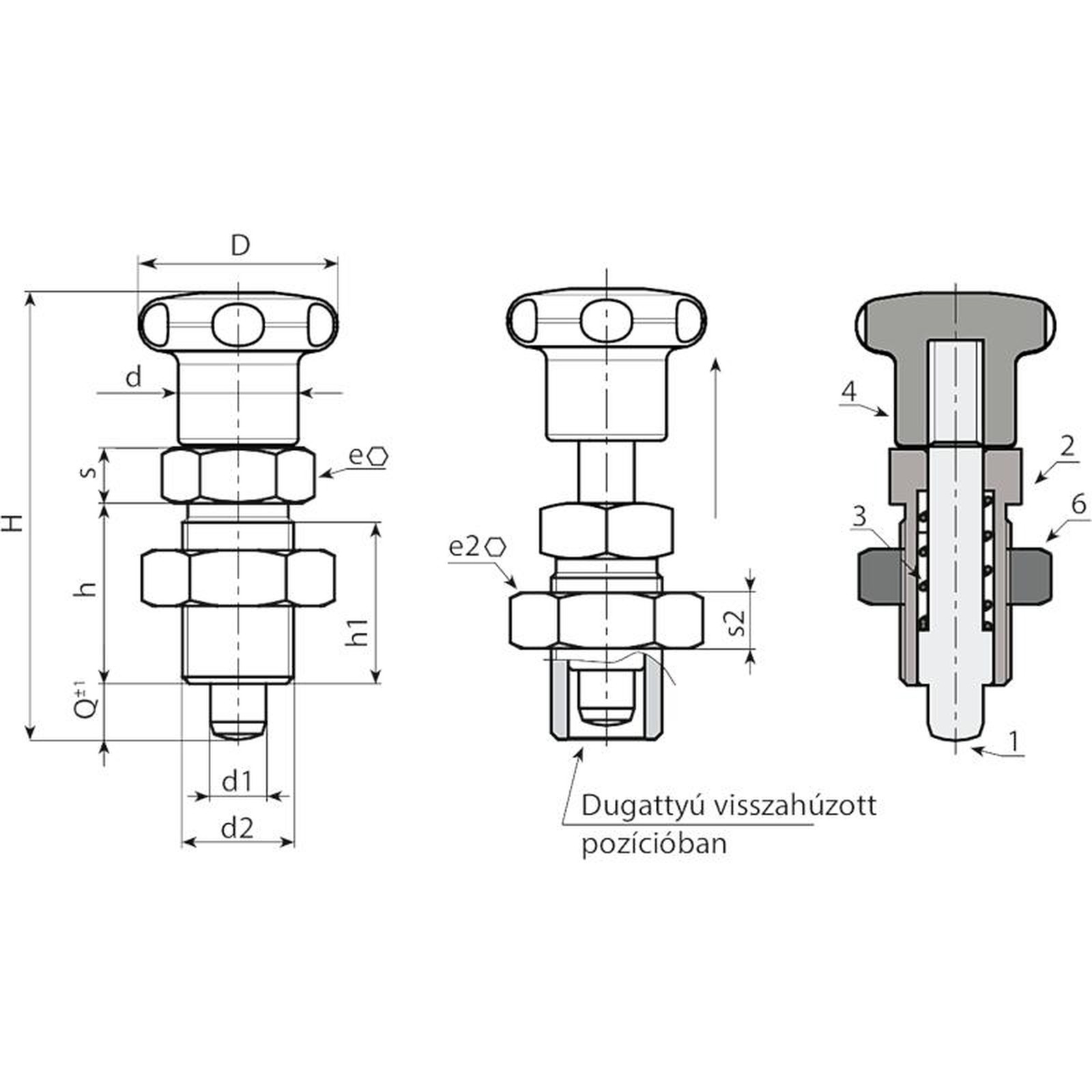| Kód | Art. | D | H | h | h1 | d2 | d | e | s | e2 | s2 | d1 -0,02 -0,04 | Q | Tömeg (g) |