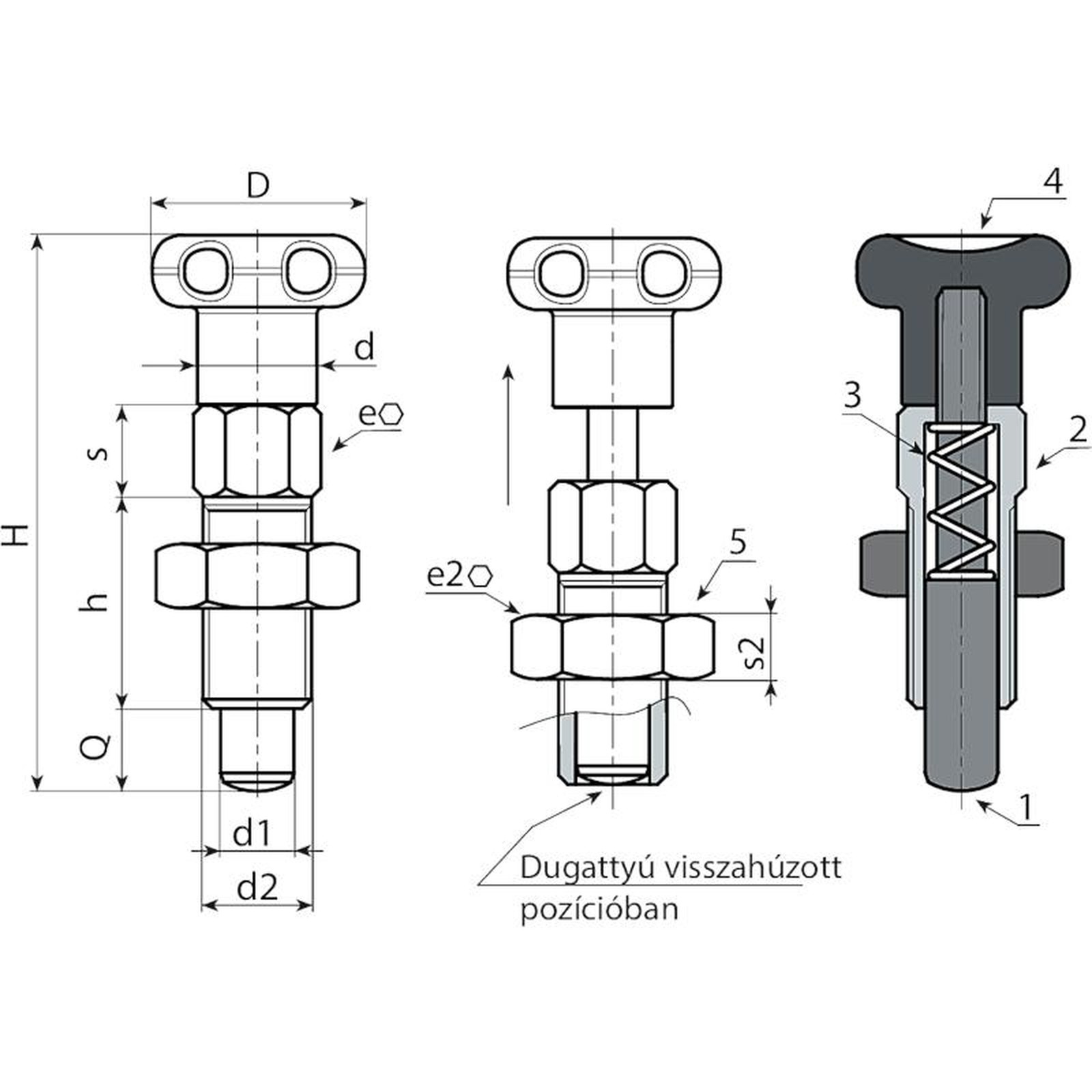 (2) Rozsdamentes acél (AISI 303) indexelő hernyócsavar test.