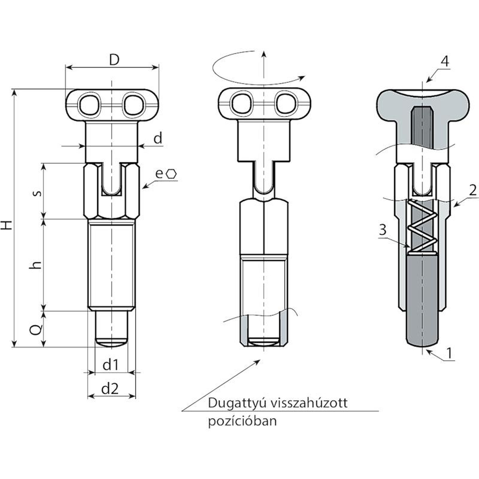 (2) Rozsdamentes acél (AISI 303) záró indexelő hernyócsavar test.