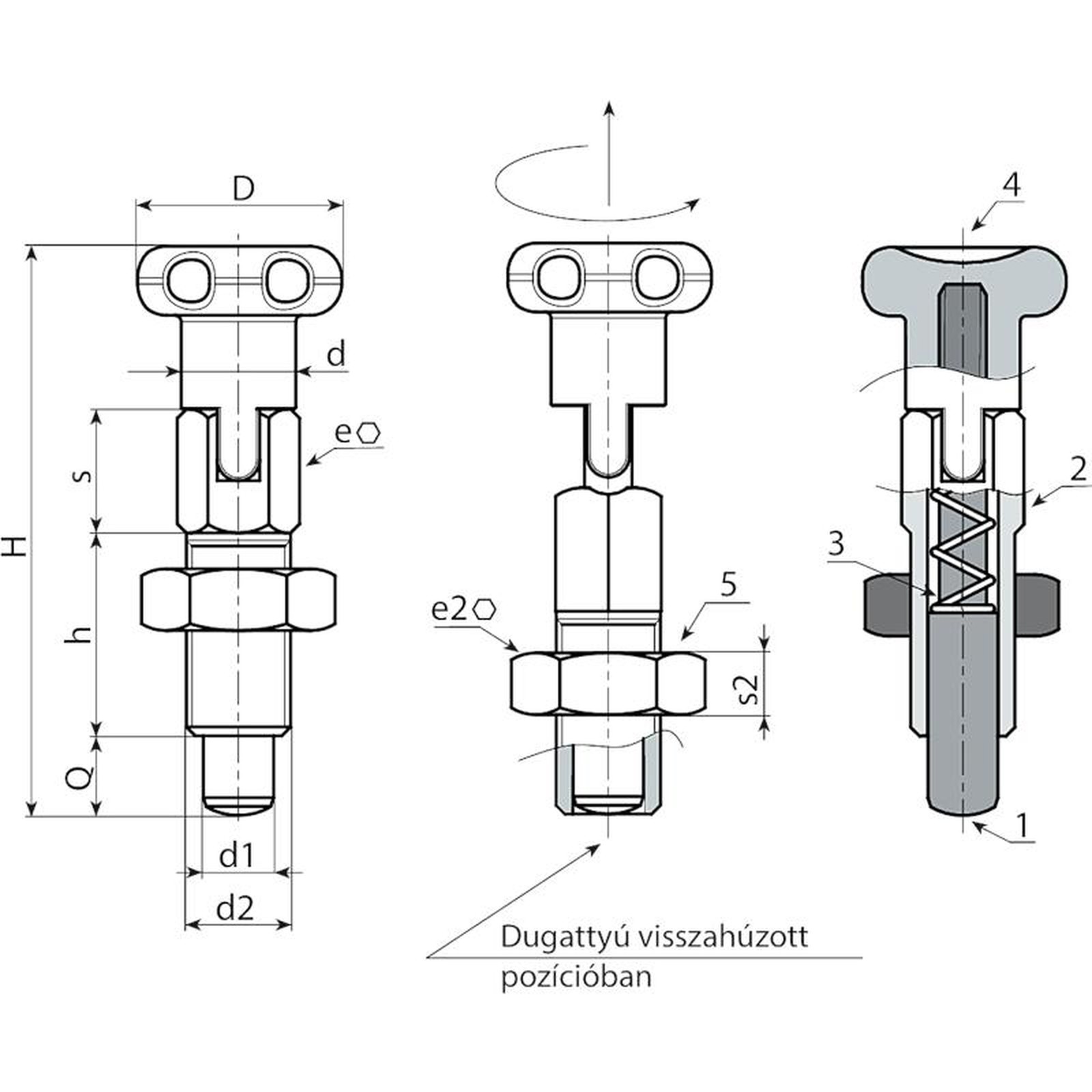 (2) Rozsdamentes acél (AISI 303) záró indexelő hernyócsavar test.