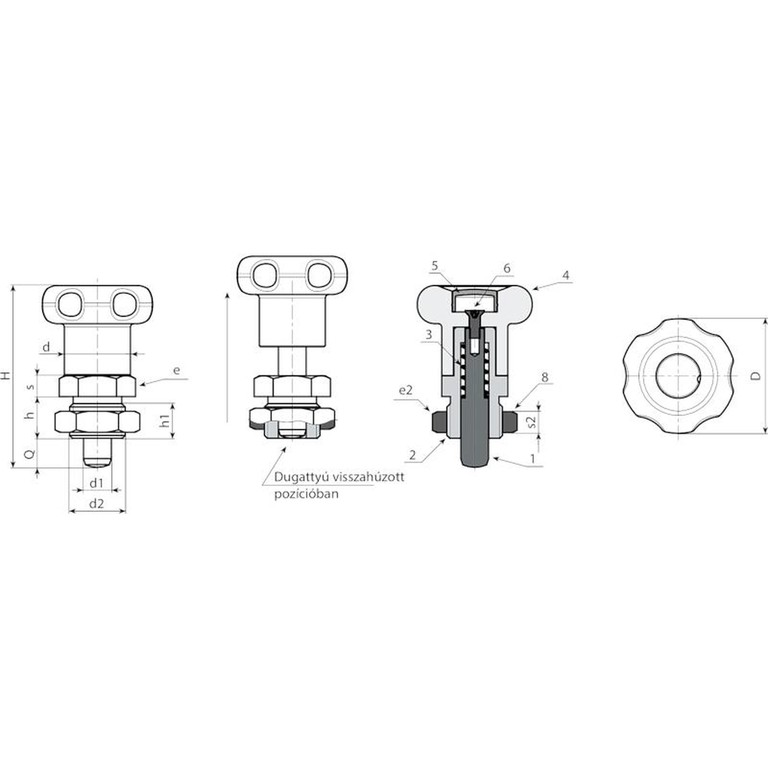 | Kód | Art. | D | H | h | h1 | d2 | d | e | s | e2 | s2 | d1 -0,02 -0,04 | Q | Tömeg (g) |