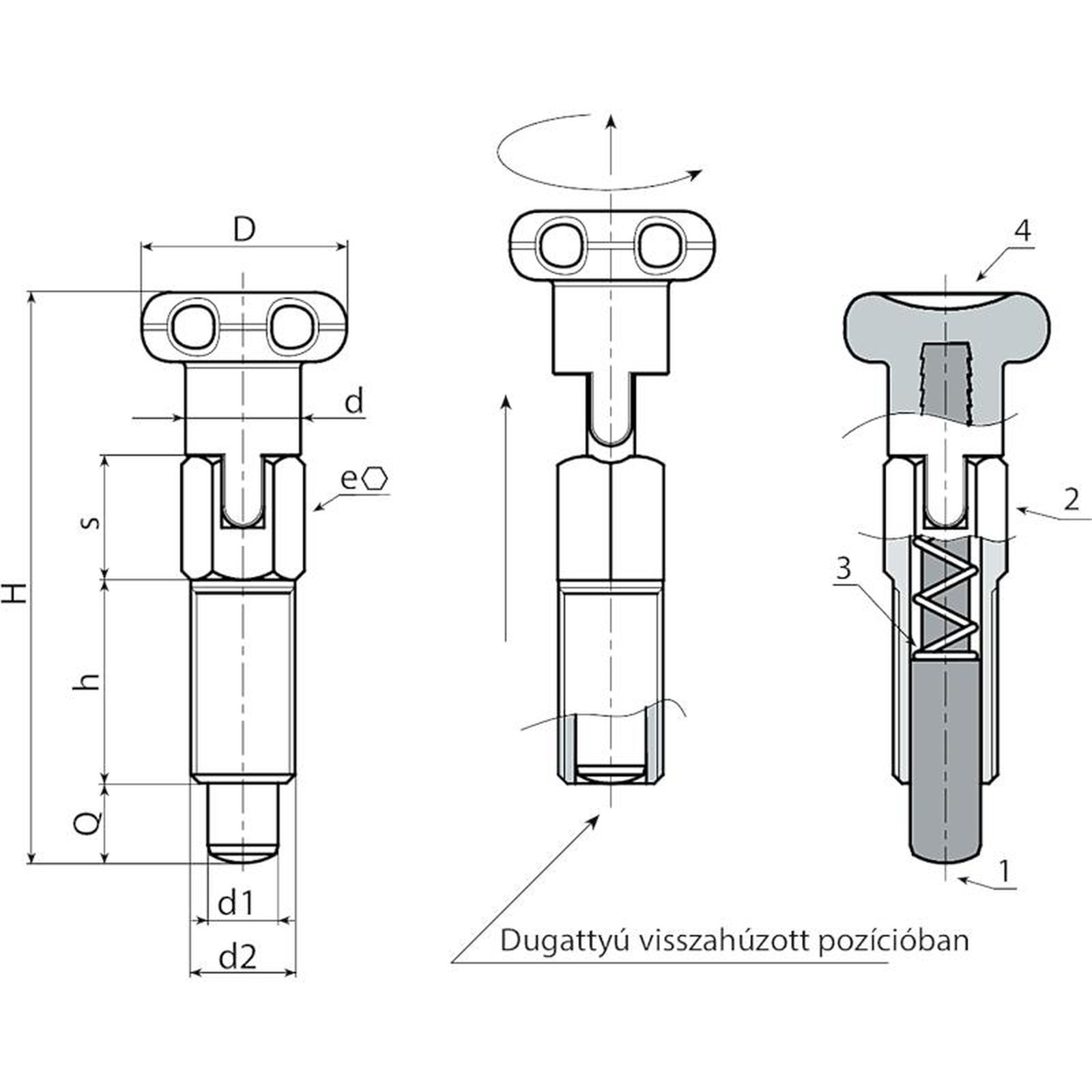 (2) Rozsdamentes acél (AISI 303) záró indexelő hernyócsavar test.