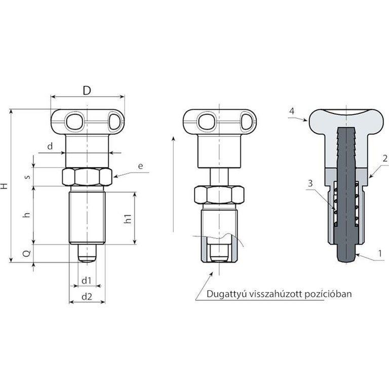 | Kód | Art. | D | H | h | h1 | d2 | d | e | s | d1 -0,02 -0,04 | Q | Tömeg (g) |
