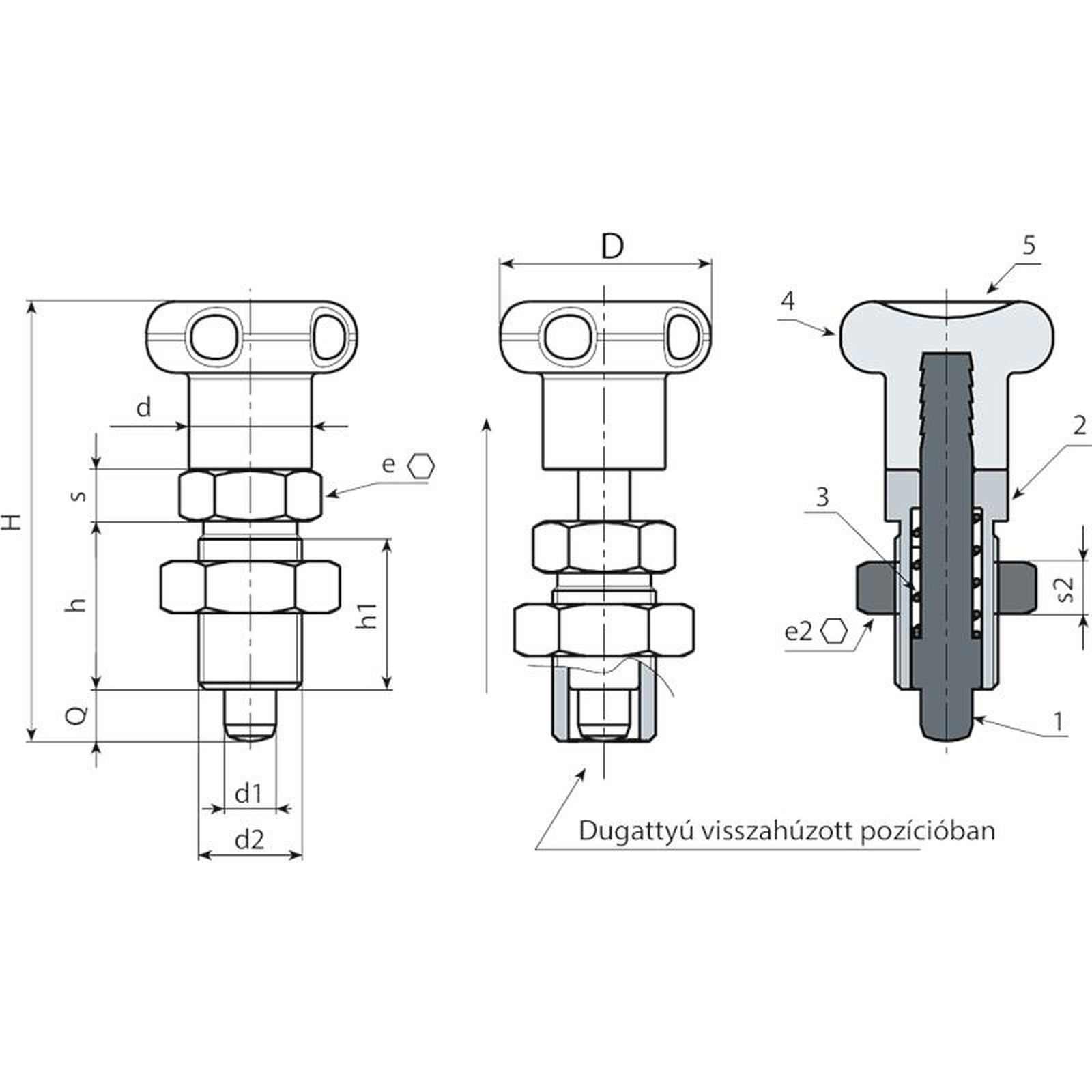 | Kód | Art. | D | H | h | h1 | d2 | d | e | s | e2 | s2 | d1 -0,02 -0,04 | Q | Tömeg (g) |