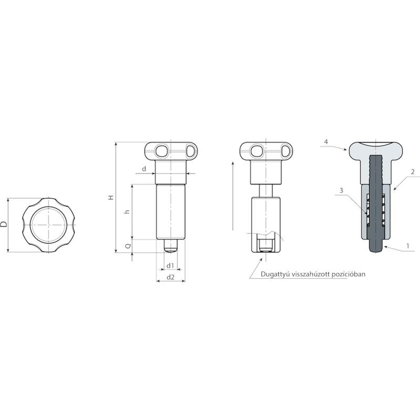 | Kód | Art. | D | H | h | d2 | d | d1 -0,02 -0,04 | Q | Tömeg (g) |