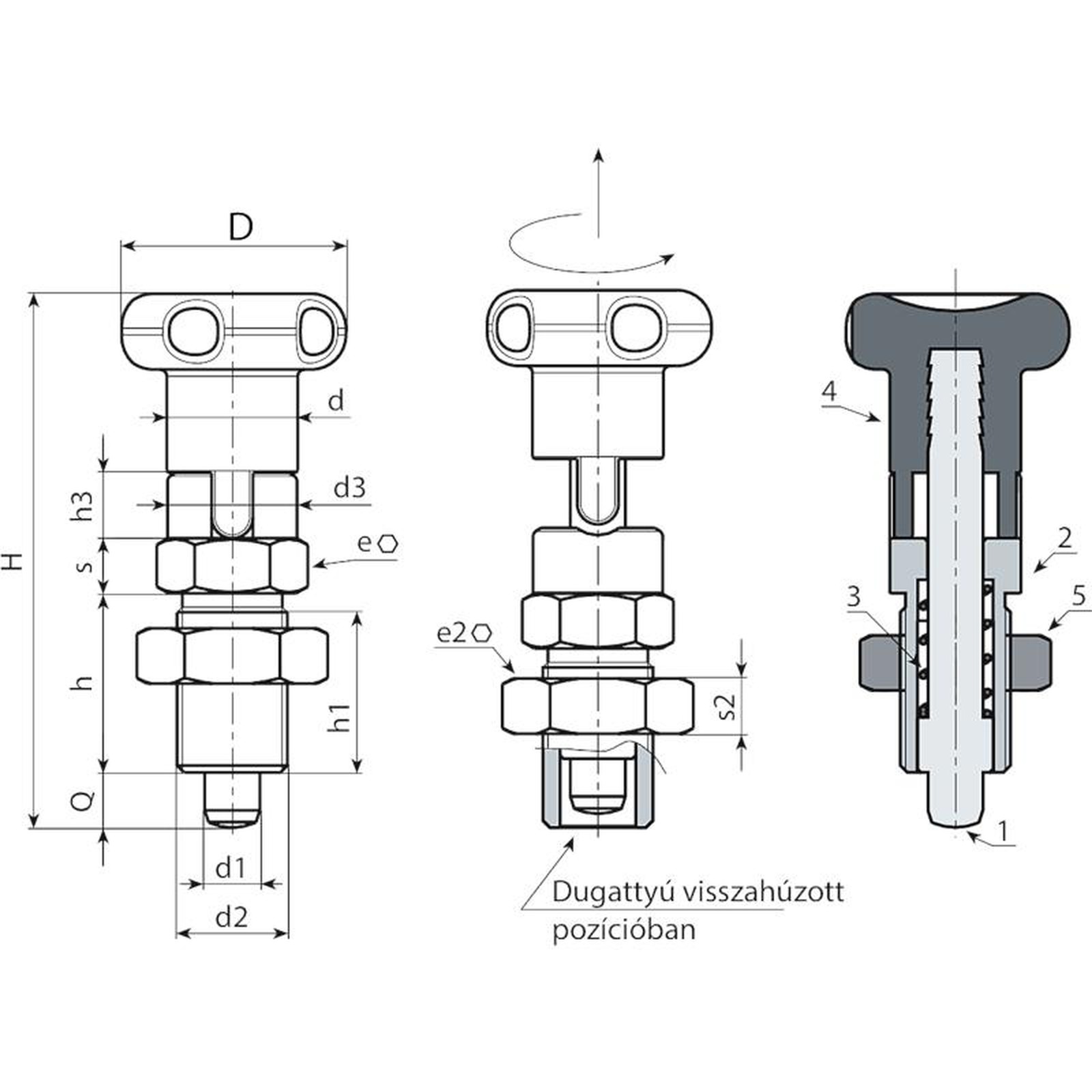| Kód | Art. | D | H | h | h1 | h3 | d3 | d2 | d | e | s | e2 | s2 | d1 -0,02 -0,04 | Q | Tömeg (g) |