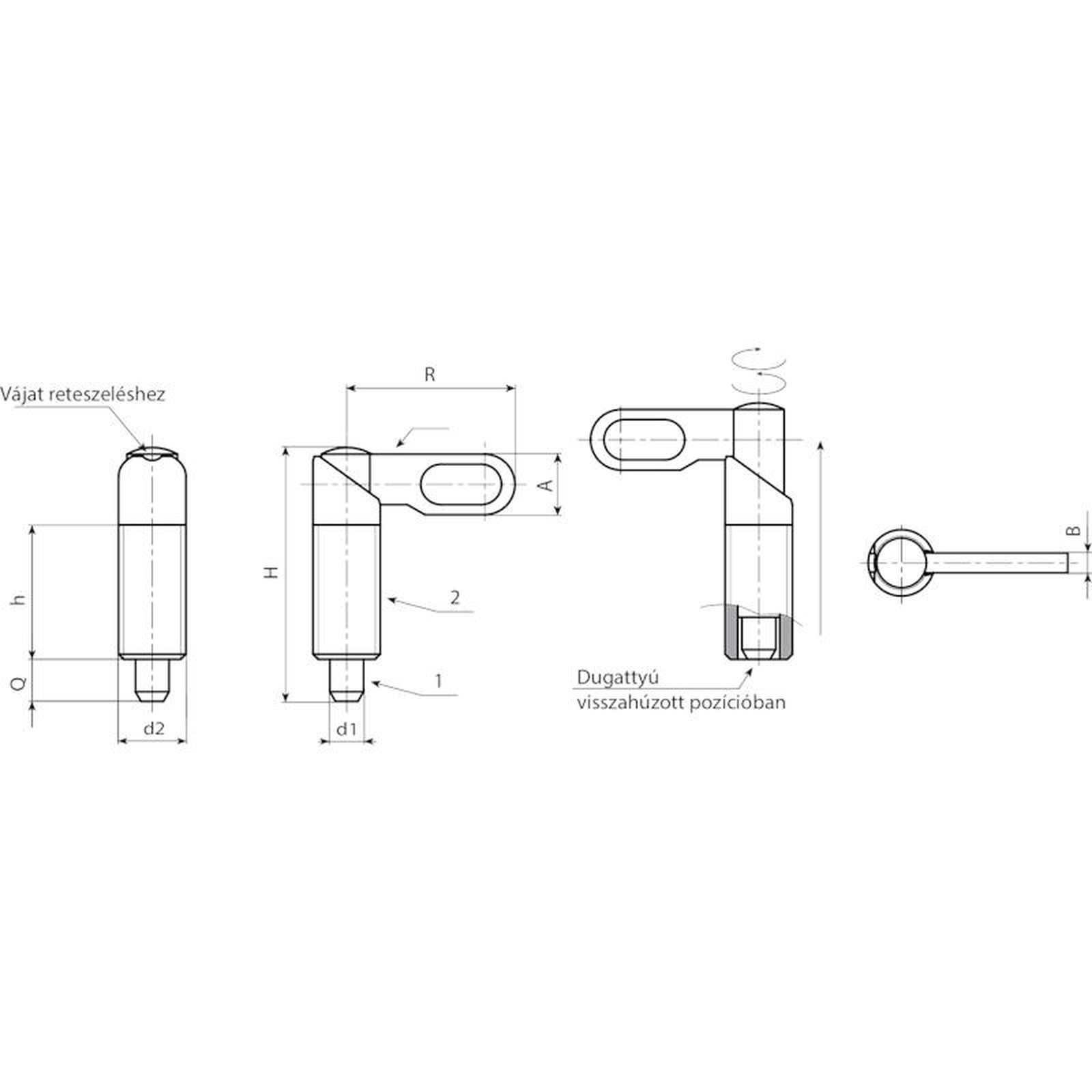 | Kód | Art. | R | H | h | A | B | d2 | d1 -0,02 -0,04 | Q | Tömeg (g) |