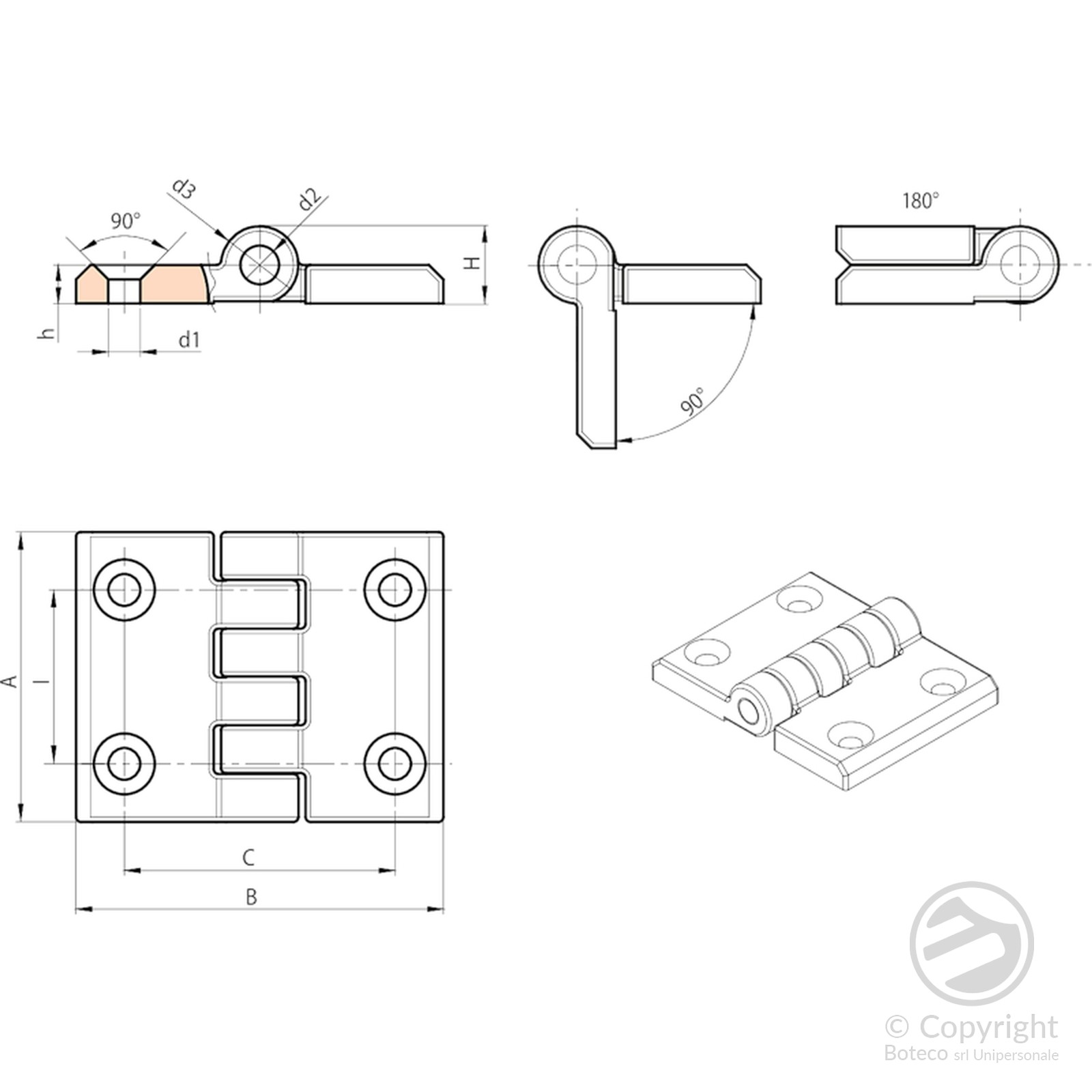 | Codice | Art. | I | C | A | B | H | h | d2 | d3 | d1 | Peso (g) |