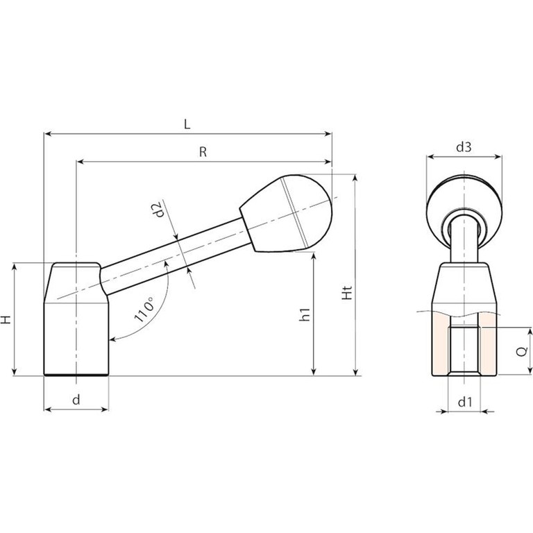 | Codice | art. | d | R | L | H | Ht | h1 | d2 | d3 | d1 6H | Q | Peso (g) |