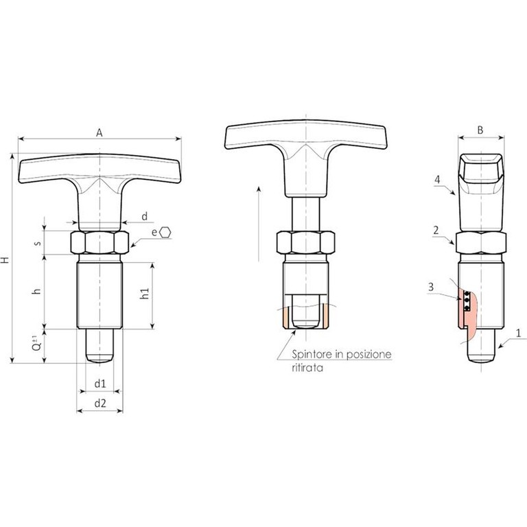 > Consigliamo l’esecuzione del foro di alloggiamento dello stelo spintore con tolleranza H7.