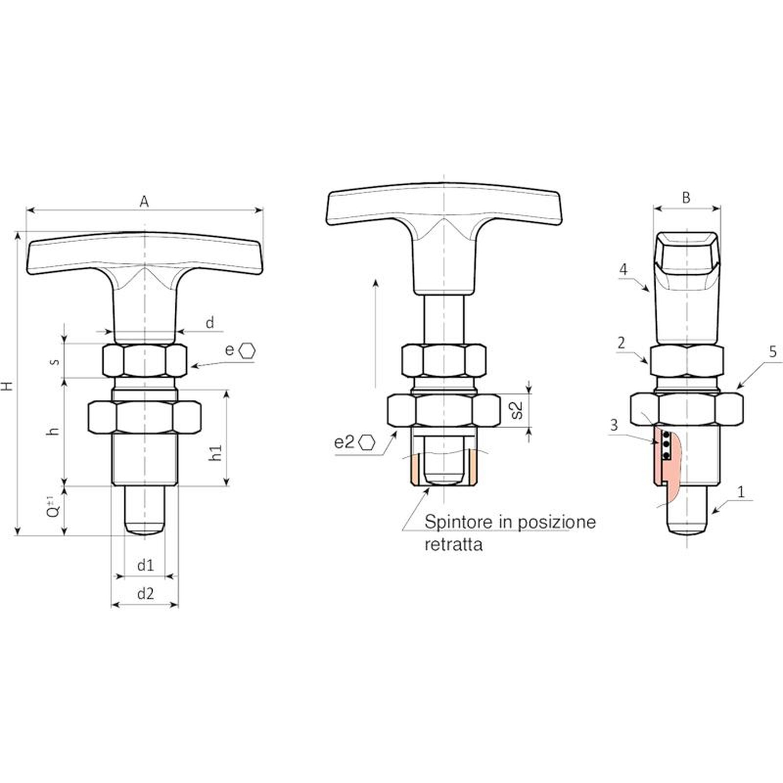 (1) Perno spintore in acciaio ad alta resistenza e temprato.