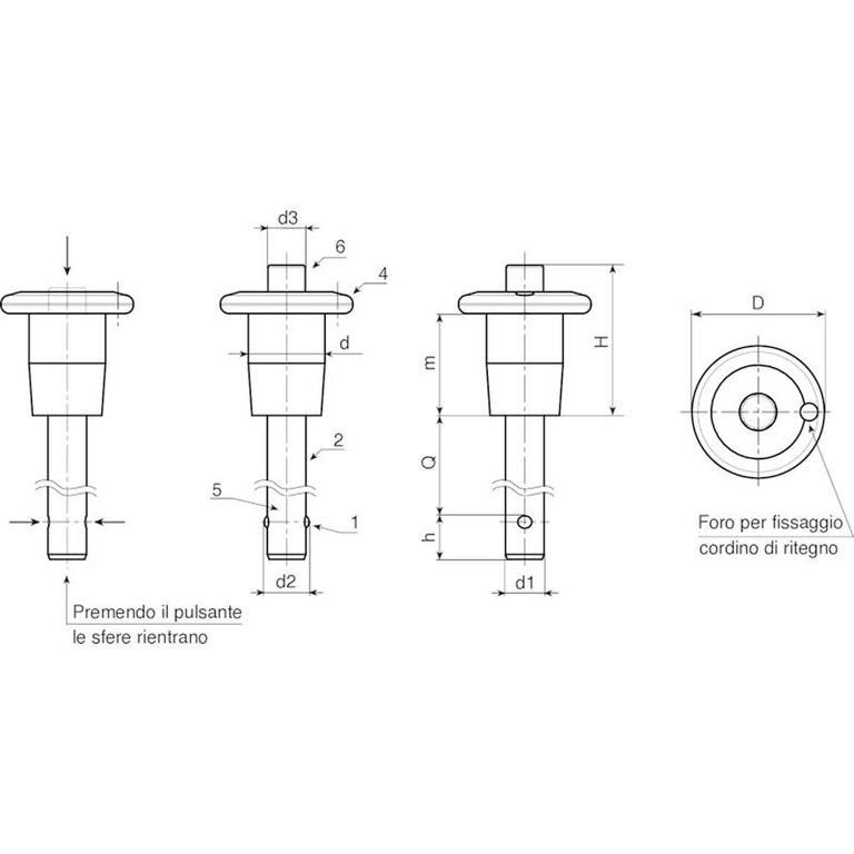 | Codice | Art. | D | H | m | d | d2 (±0.25) | d3 | d1 (-0,04 -0,08) | Q (+0.5) | h (±1) | Peso (g) |