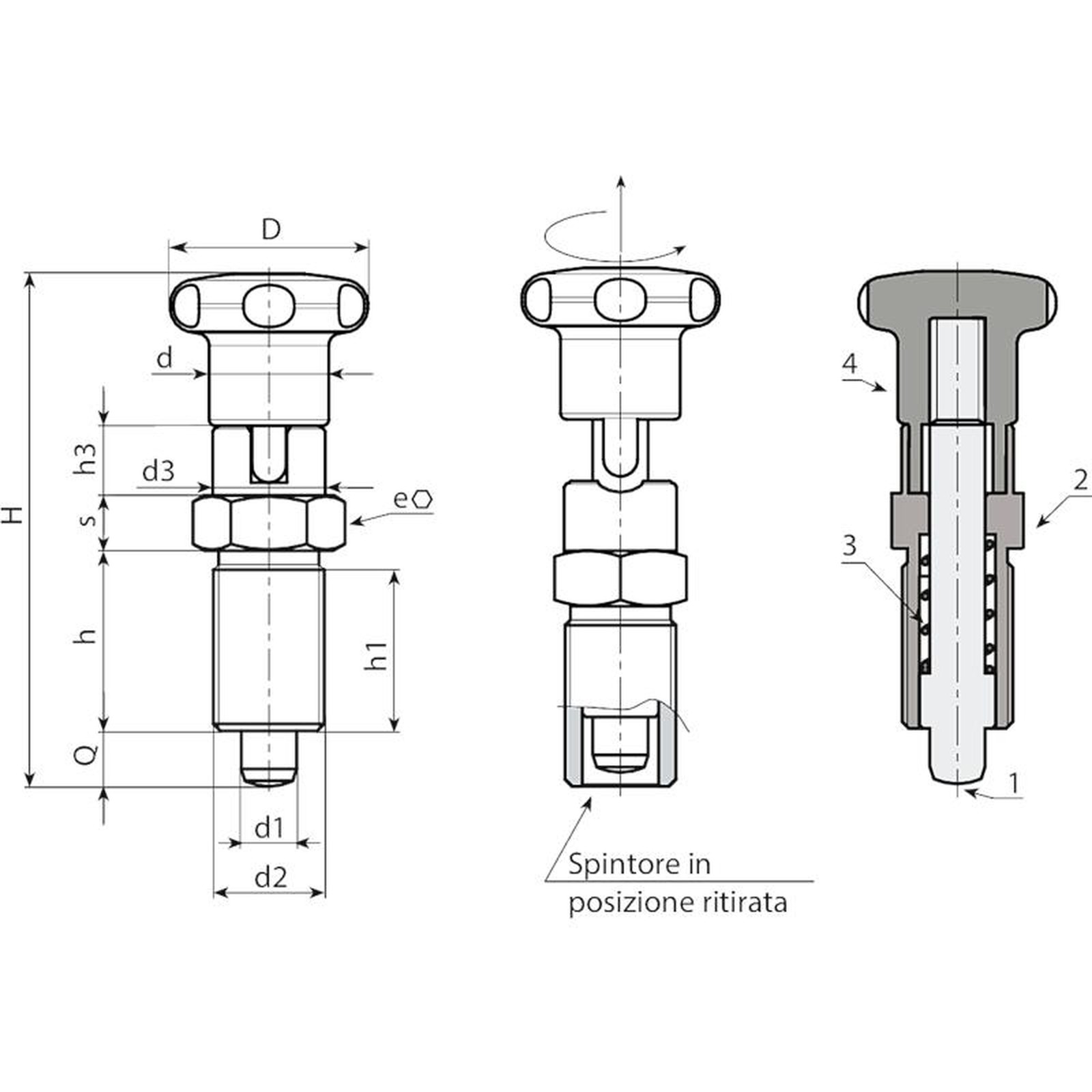 > Consigliamo l’esecuzione del foro di alloggiamento dello stelo spintore con tolleranza H7.
