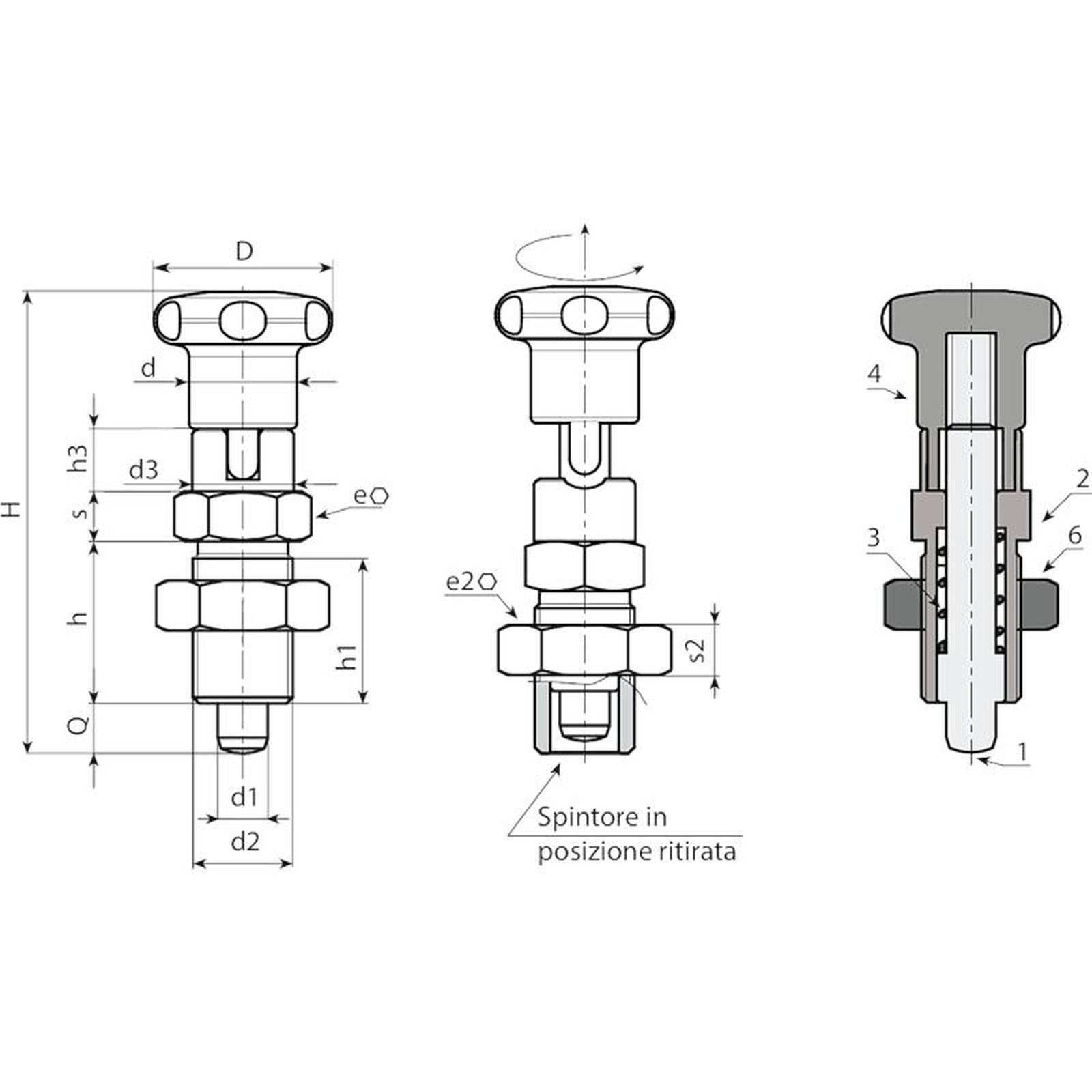 | Codice | Art. | D | H | h | h1 | h3 | d3 | d2 | d | e | s | e2 | s2 | d1 -0,02 -0,04 | Q | Peso (g) |