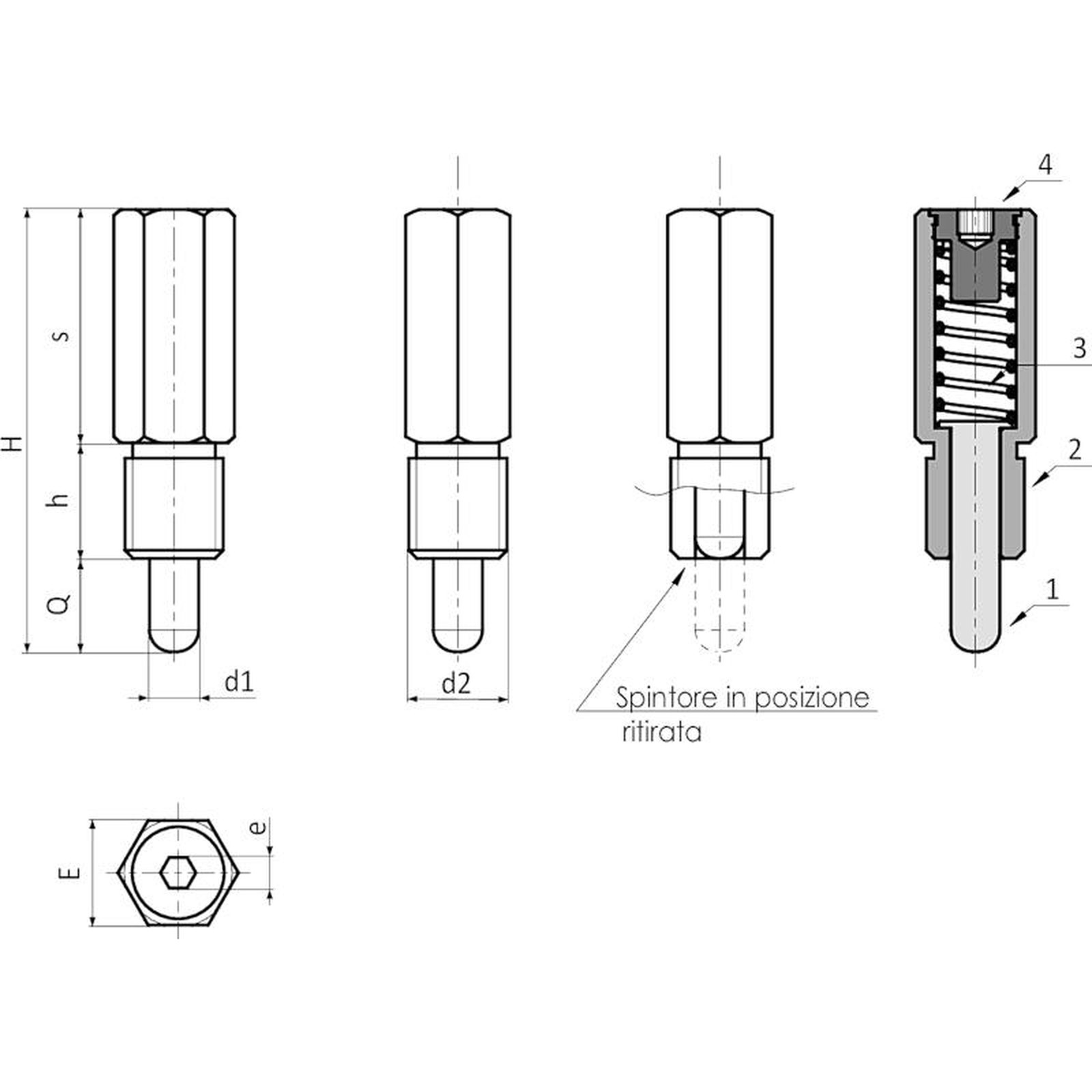> Consigliamo l’esecuzione del foro di alloggiamento dello stelo spintore con tolleranza H7.