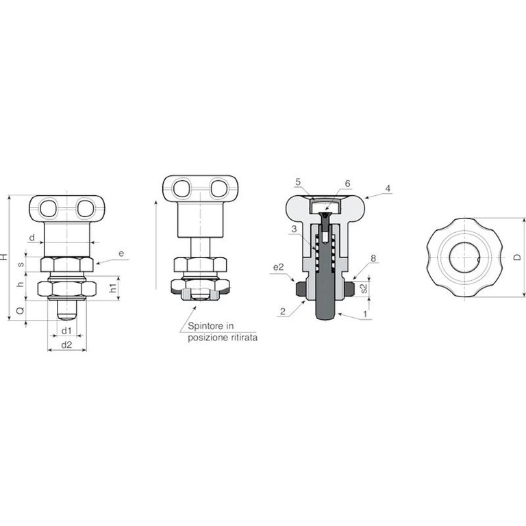 > Consigliamo l’esecuzione del foro di alloggiamento dello stelo spintore con tolleranza H7.