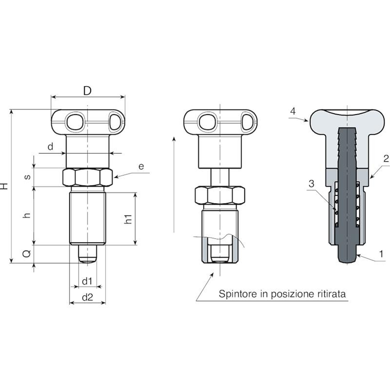 (1) Perno spintore in acciaio inox, (Aisi 303).