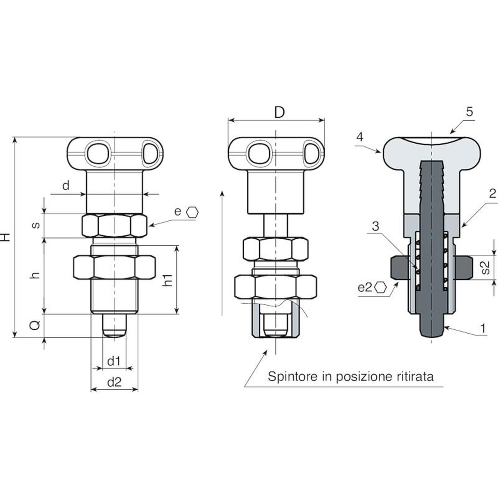 (1) Perno spintore in acciaio ad alta resistenza e temprato.