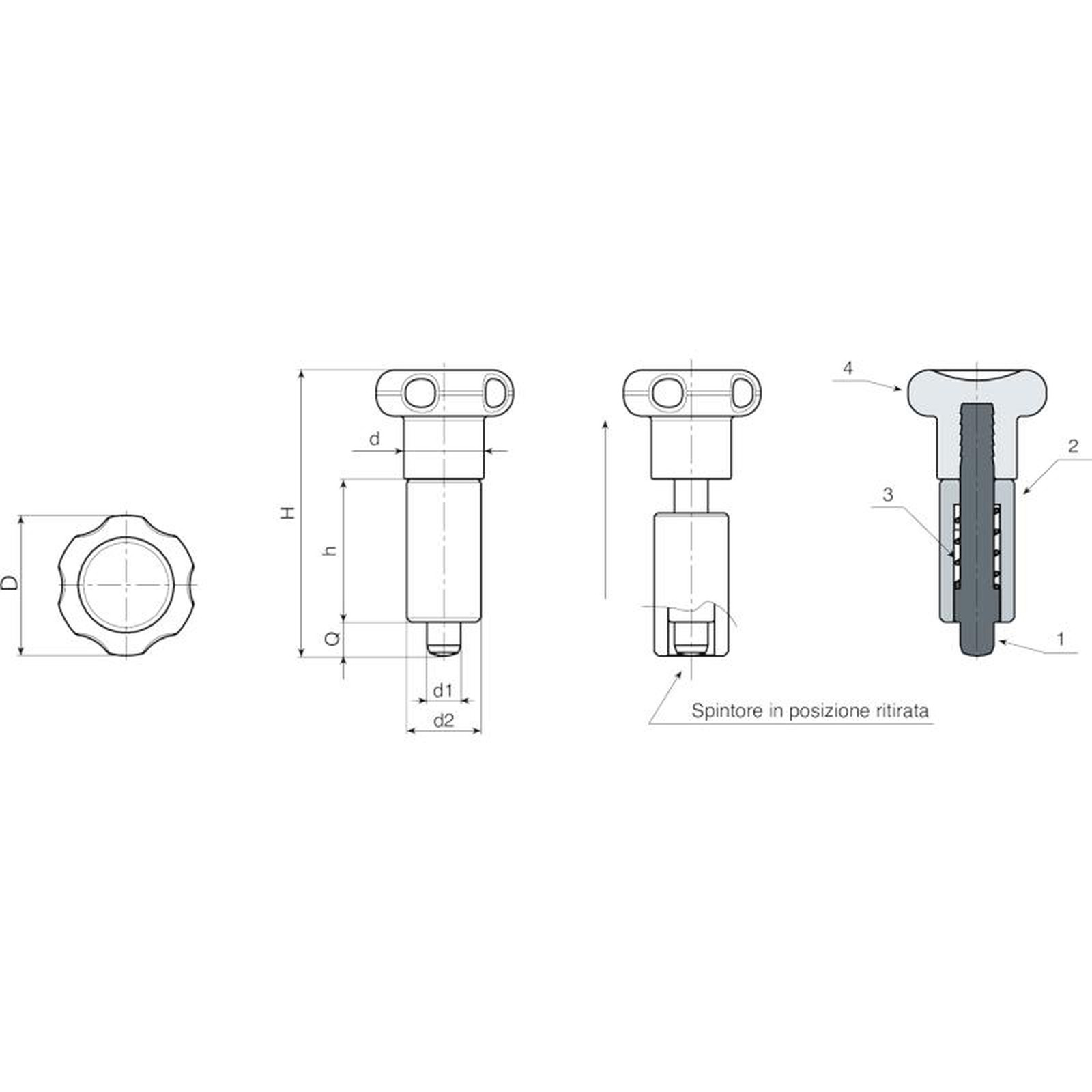 > Consigliamo l’esecuzione del foro di alloggiamento dello stelo spintore con tolleranza H7.