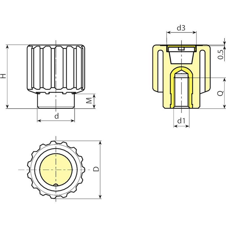 | Codice | Art. | D | H | M | d | d3 | d1 6H | Q | Peso (g) |