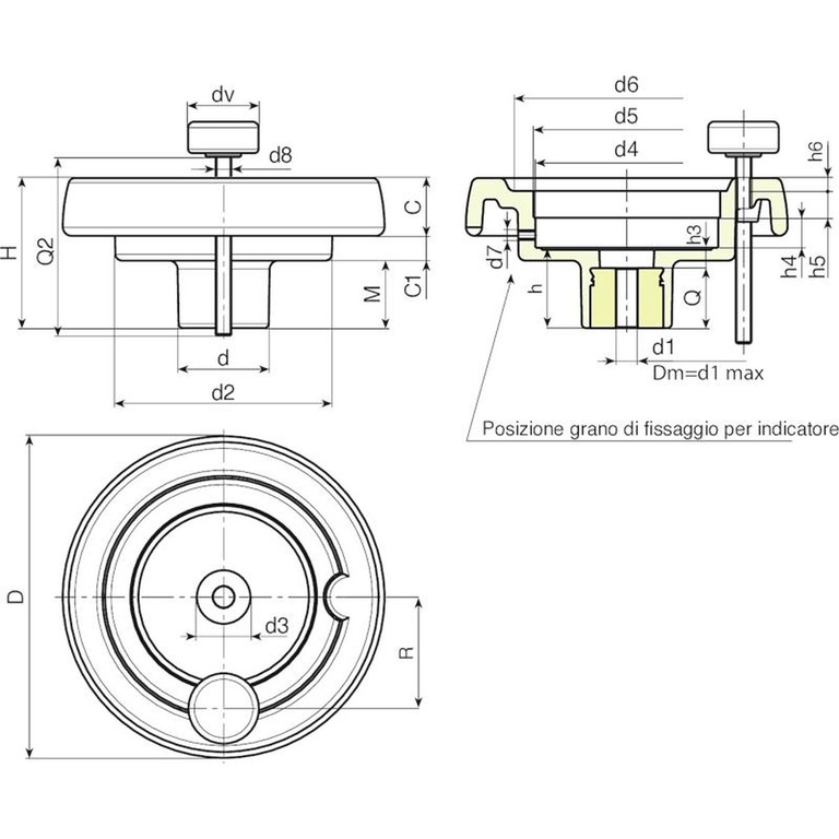 VOLANTINO DI MANOVRA PIENO CON SEDE INDICATORE E POMELLO DI BLOCCAGGIO