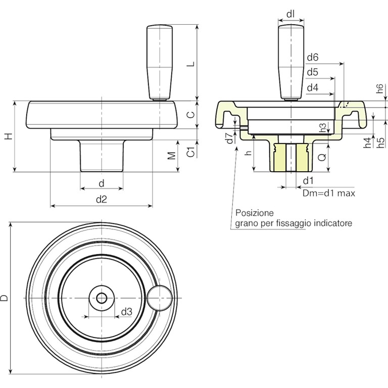 VOLANTINO DI MANOVRA PIENO CON SEDE INDICATORE E MANICO GIREVOLE M129