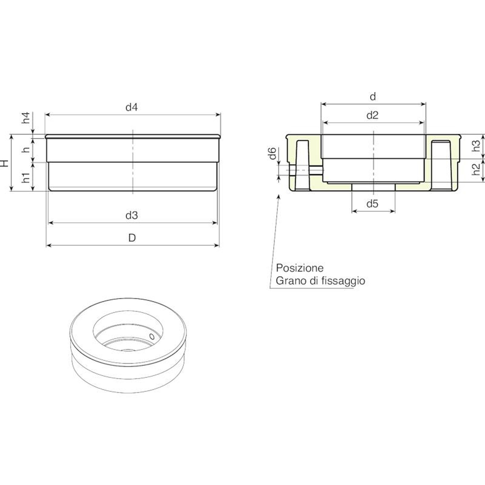 | Codice | art. | D | d | d2 | d3 | d4 | d5 | d6 | H | h | h1 | h2 | h3 | h4 | Peso (g) |