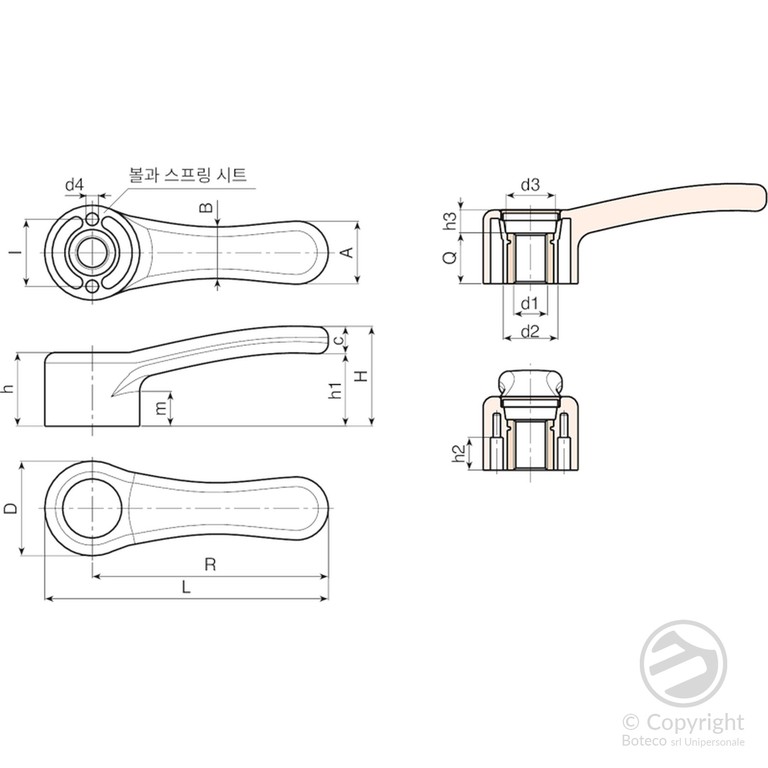 | 코드 | Art. | L | R | D | H | h | h1 | h2 | h3 | m | I | A | B | c | d2 | d3 | d4 | d1 6H | Q | 무게(g) |