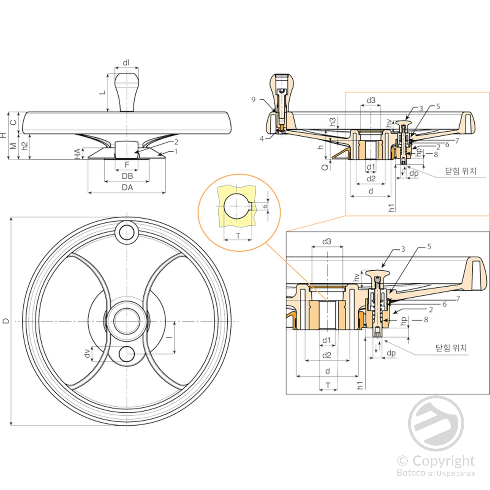 이 제품은 기존 핸드휠 D207-350의 변형 모델입니다. 특수 조립 키트를 추가함으로써 특정 시장, 즉 레일 위에 설치된 이동식 수납장(모바일 선반) 시장의 요구 사항에 맞게 사용할 수 있습니다. 이 핸드휠은 레일을 따라 선반을 이동시키는 데 사용됩니다. 장착된 잠금 장치 또는 잠금 피스톤은 선반 유닛을 특정 위치에 고정, 정지 또는 배치하는 역할을 합니다.