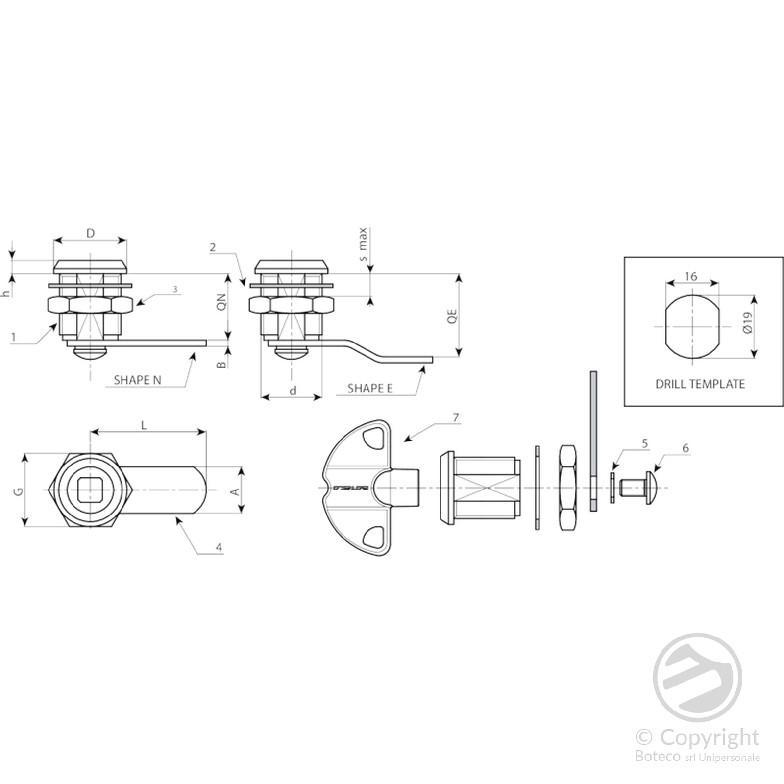 | 코드 | Art. | A | d | D | L | Q | E | F | G | Ht | H | s (최대) | s1 | 무게(g) | 키 |