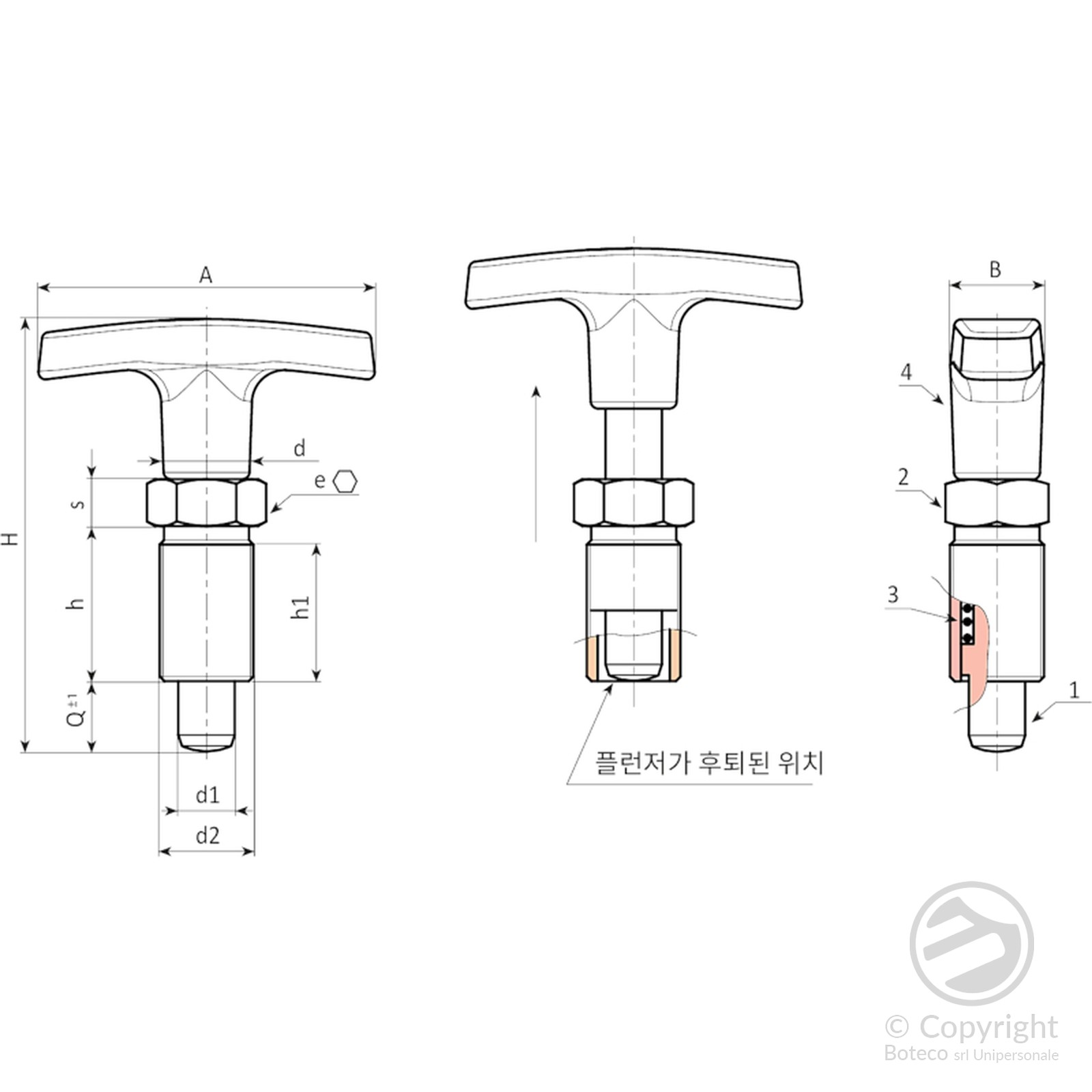 (4) 강화 폴리아미드 T자형 손잡이. 분해할 수 없습니다. 오일과 그리스에 강함.