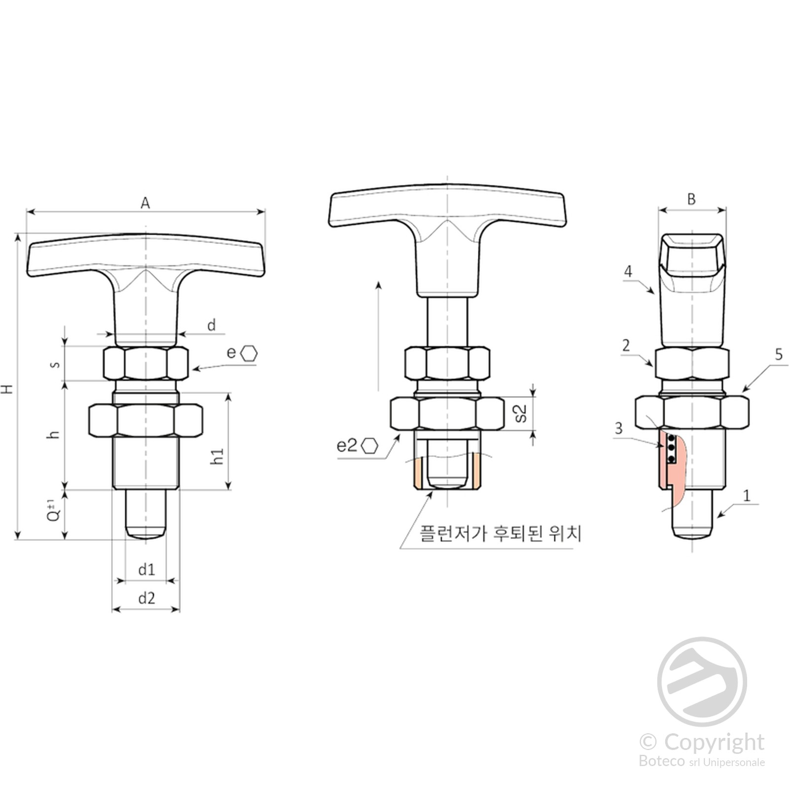 (4) 강화 폴리아미드 T자형 손잡이. 분해할 수 없습니다. 오일과 그리스에 강함.