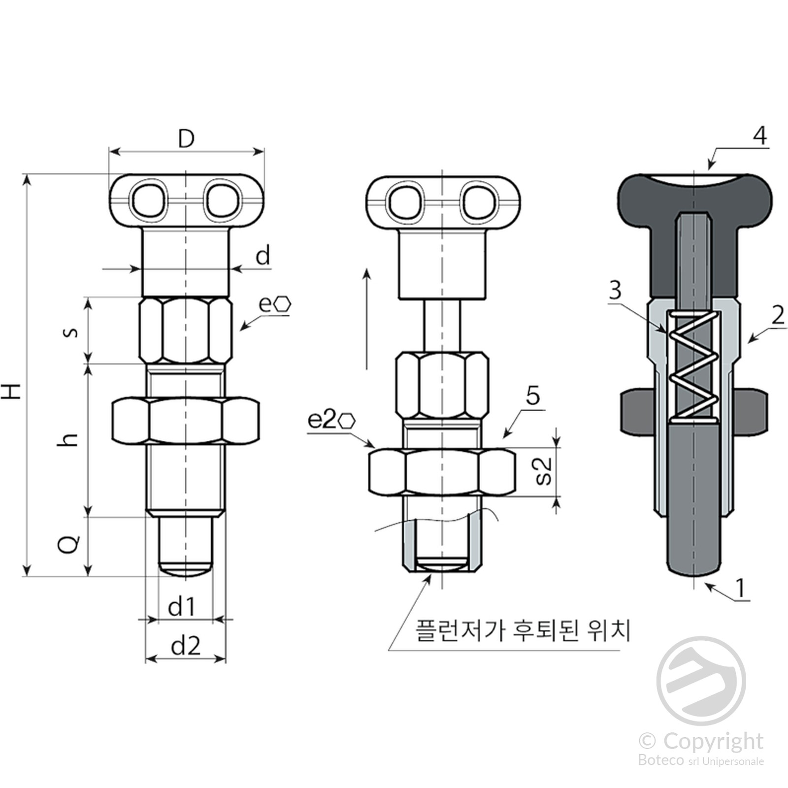 (2) 스테인리스강(AISI 303) 인덱싱 플런저 본체.