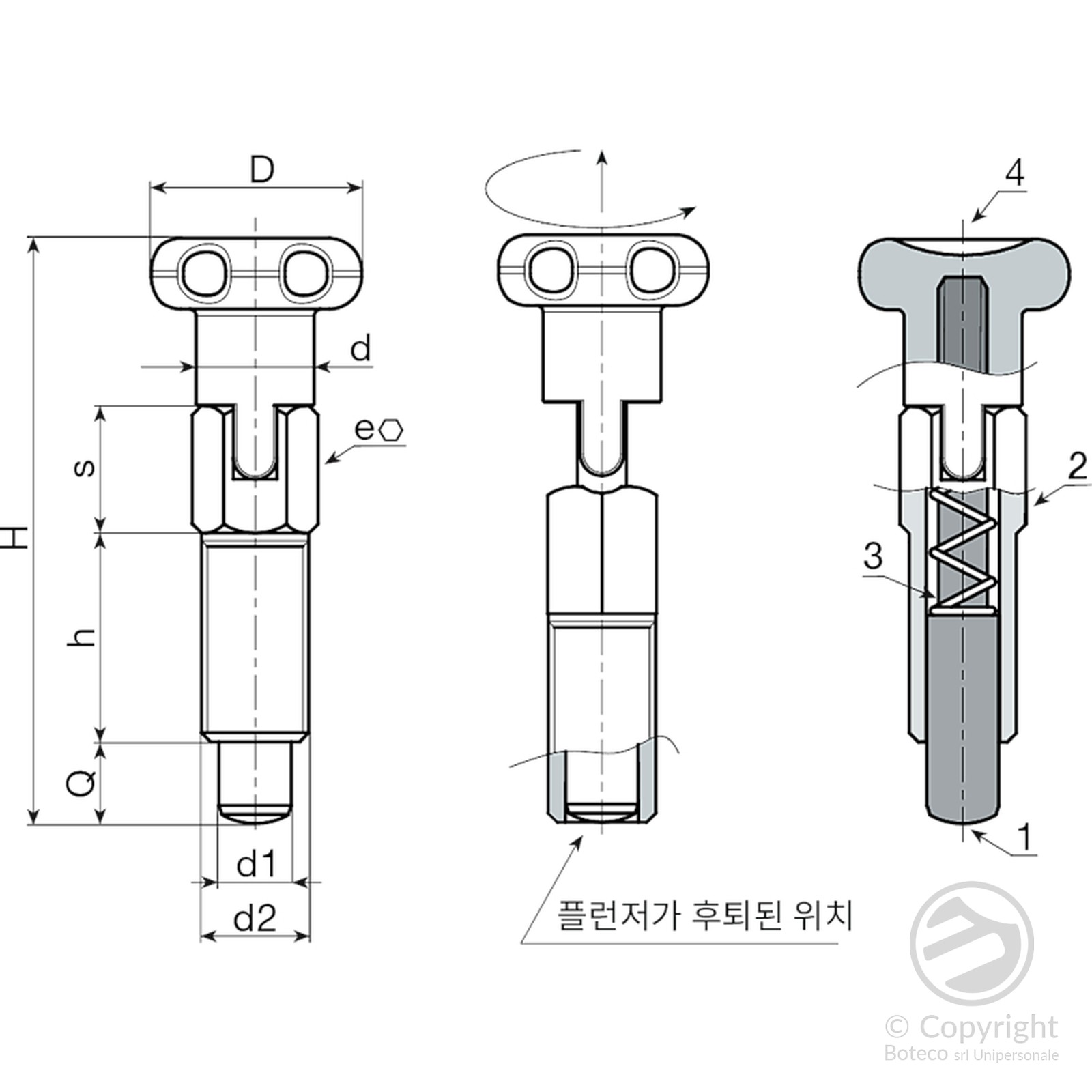 (2) 스테인리스강(AISI 303) 잠금 인덱싱 플런저 본체.