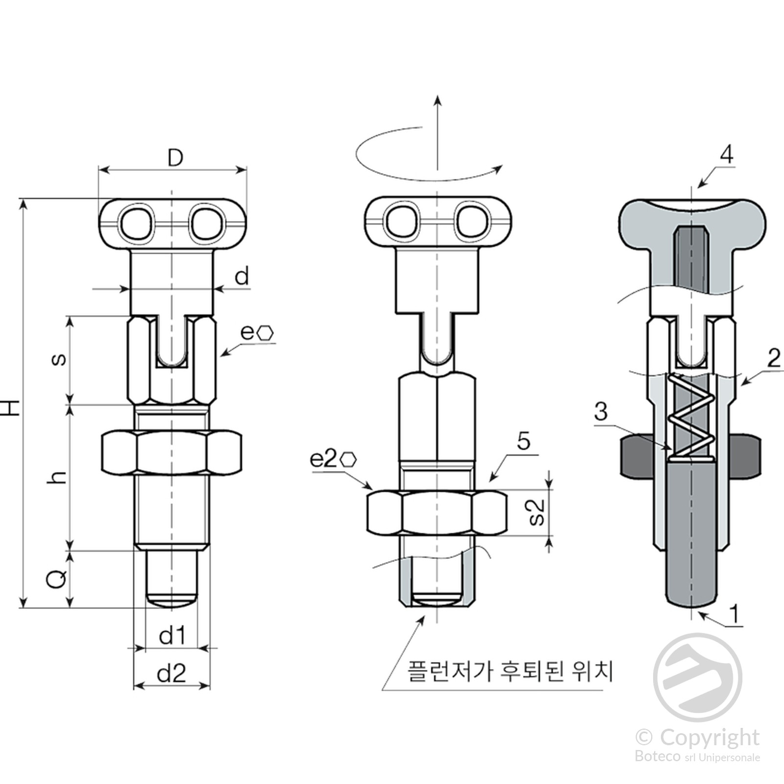 (2) 스테인리스강(AISI 303) 잠금 인덱싱 플런저 본체.