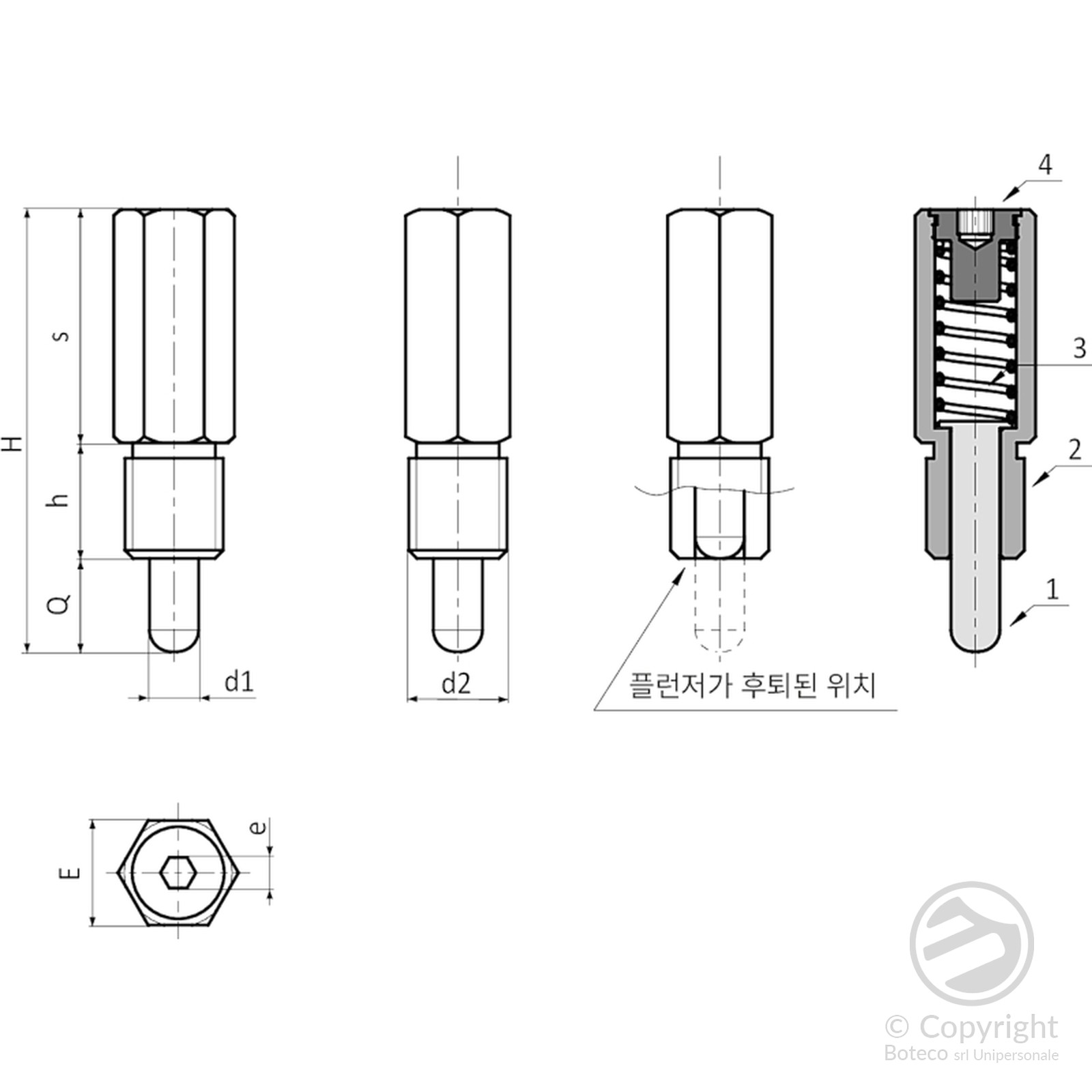 | 코드 | Art. | E | H | h | s | e | d2 | d1 -0,04 -0,08 | Q | 무게(g) |