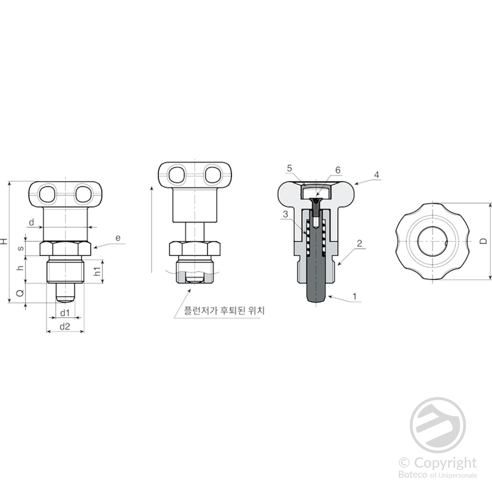 | 코드 | Art. | D | H | h | h1 | d2 | d | e | s | d1 -0,02 -0,04 | Q | 무게(g) |