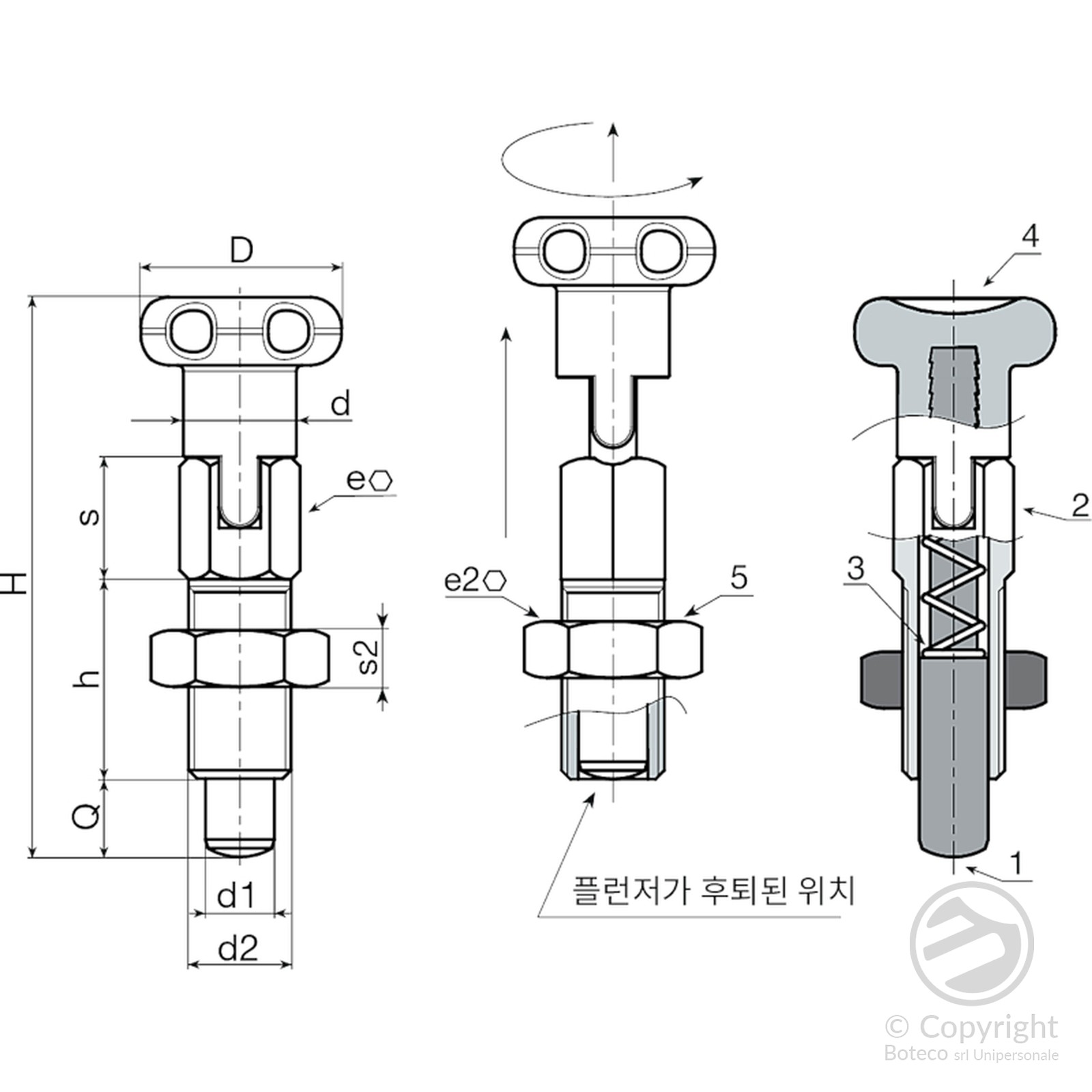 (2) 스테인리스강(AISI 303) 잠금 인덱싱 플런저 본체.