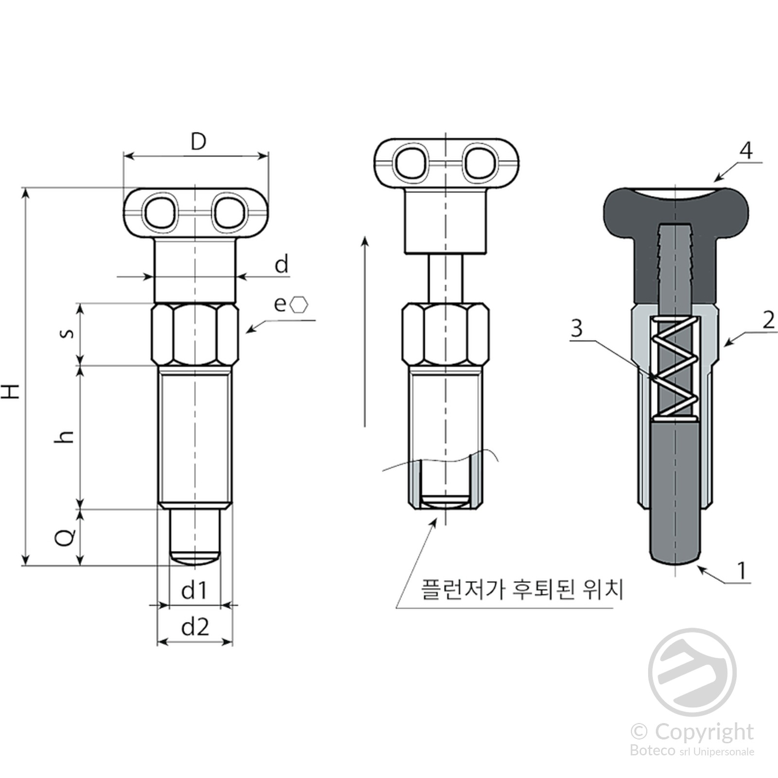 (2) 스테인리스강(AISI 303) 인덱싱 플런저 본체.