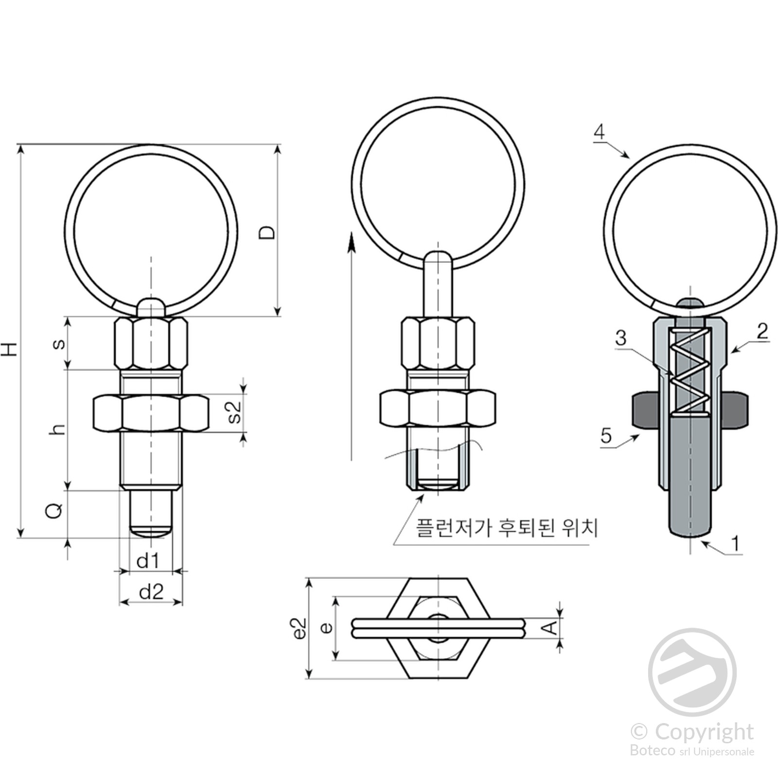 (2) 스테인리스강(AISI 303) 인덱싱 플런저 본체.