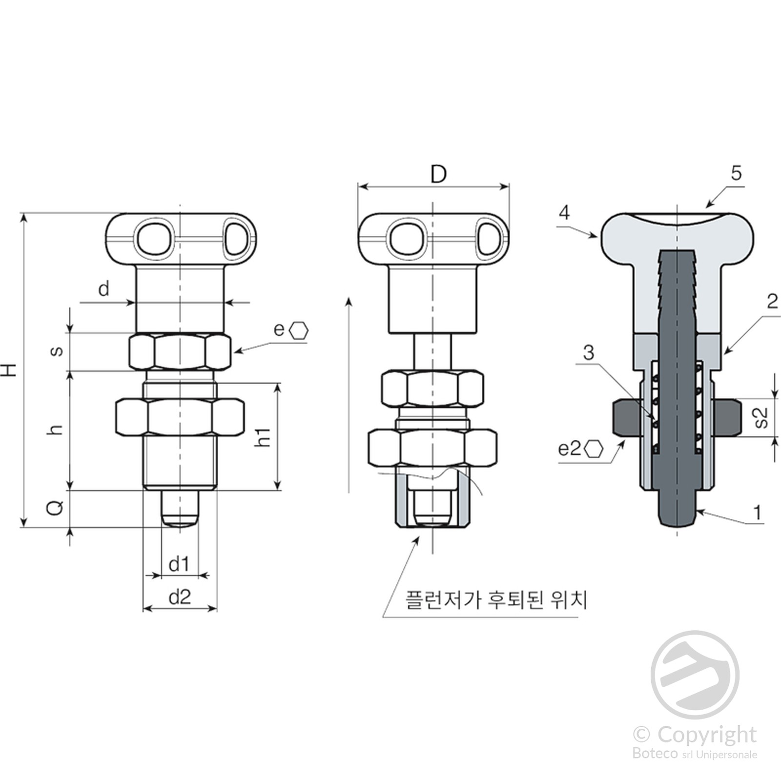 | 코드 | Art. | D | H | h | h1 | d2 | d | e | s | e2 | s2 | d1 -0,02 -0,04 | Q | 무게(g) |