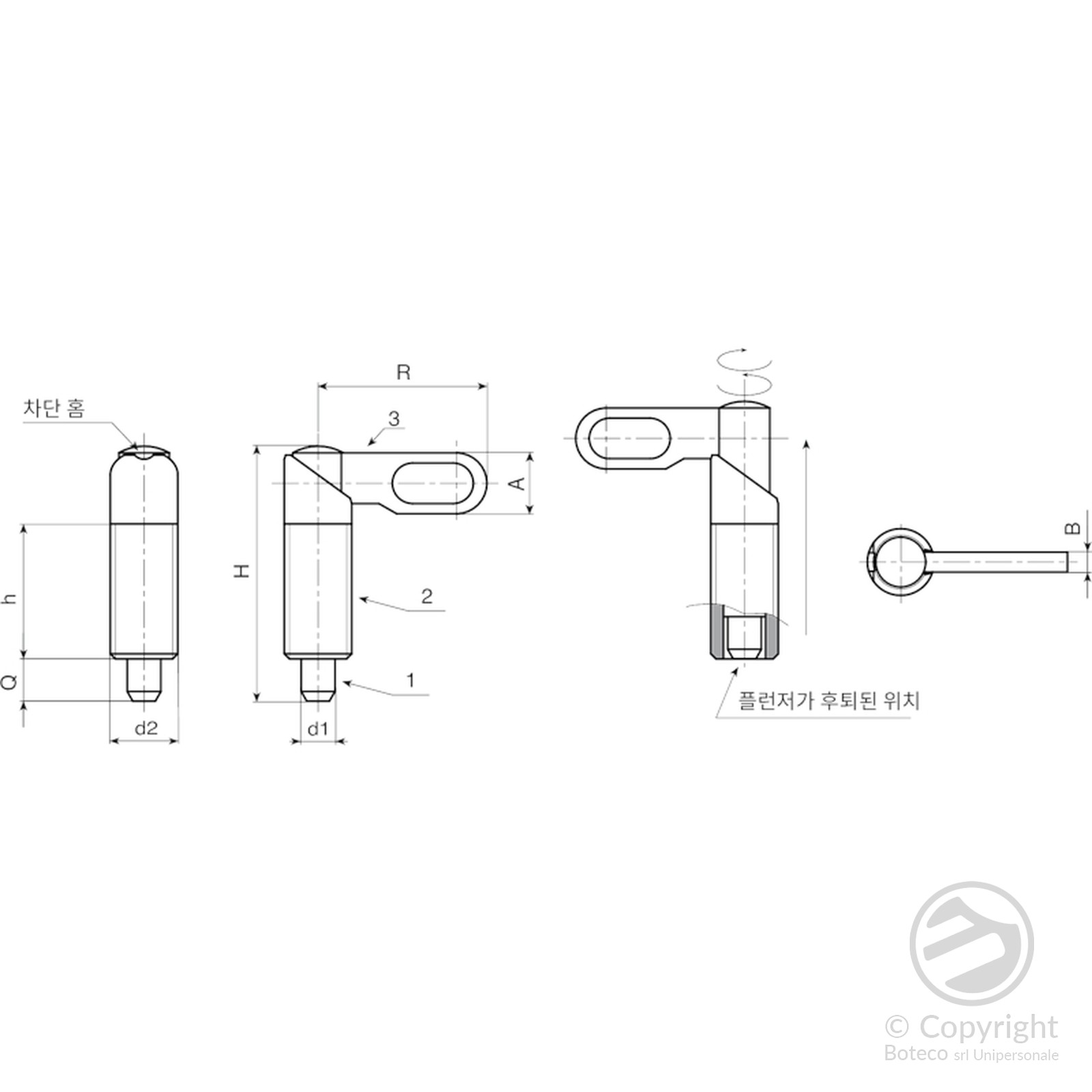 | 코드 | Art. | R | H | h | A | B | d2 | d1 -0,02 -0,04 | Q | 무게(g) |