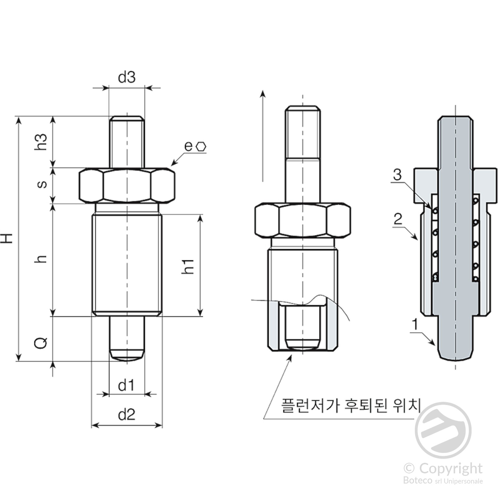 | 코드 | Art. | H | h | h1 | d2 | d3 | h3 | e | s | d1 -0,02 -0,04 | Q | 무게(g) |