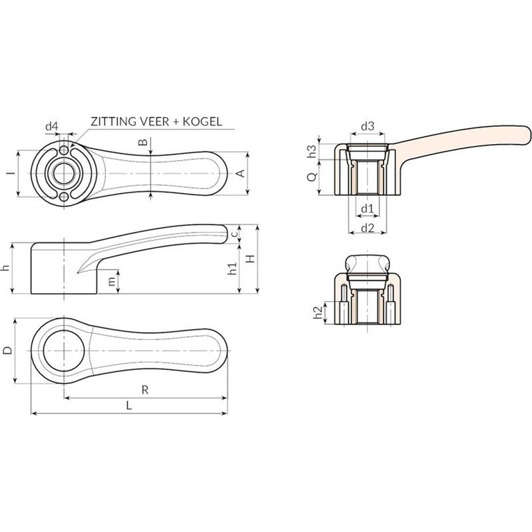 | Code | Art. | L | R | D | H | h | h1 | h2 | h3 | m | I | A | B | c | d2 | d3 | d4 | d1 6H | Q | Gewicht (g) |