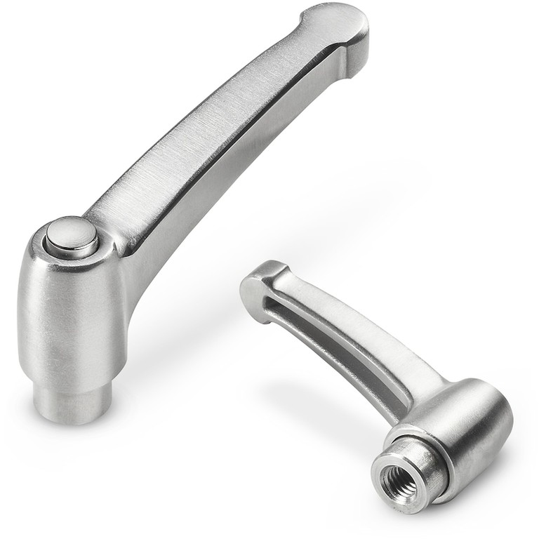 De verstelbare spangreep volledig in RVS maakt deel uit van onze 'METALLINE'-lijn, een speciale productielijn in metaal specifiek ontworpen voor toepassingen waarbij reinheid en hygiëne belangrijk zijn. Hij werkt analoog als de kunststof spangrepen, maar omdat hij volledig vervaardigd is uit RVS, is hij sterker en heeft hij een betere spankracht. Door zijn vorm en de mogelijkheid om de spangreep zelf omhoog te trekken en terug te plaatsen onder een andere hoek, kan hij worden gebruikt in kleine openingen waar onvoldoende ruimte is voor de volledige rotatie.