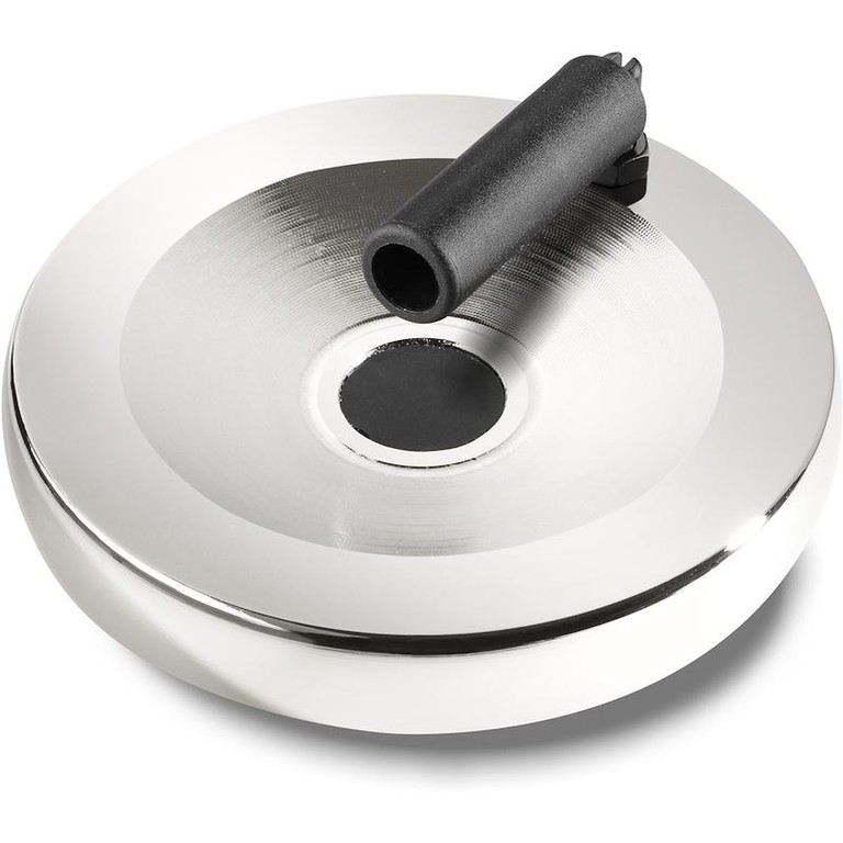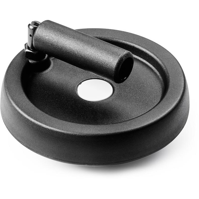 ALUMINIUM SCHIJFHANDWIEL MET GLADDE BORING EN DRAAIBARE INKLAPBARE GREEP