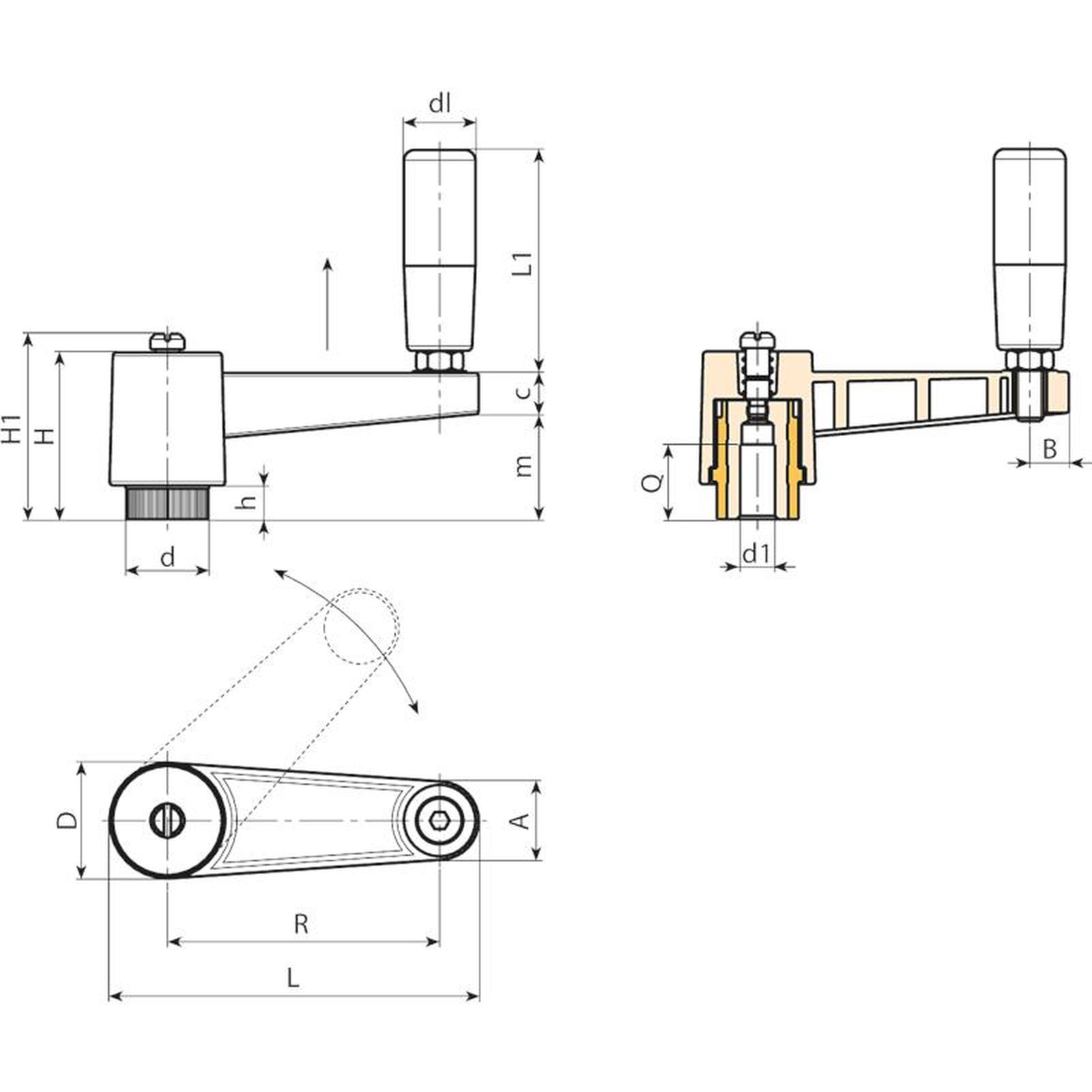 | Code | Art. | L | R | H | D | d | m | c | A | B | h | H1 | d1 H10 | Q | dl | L1 | Gewicht (g) |