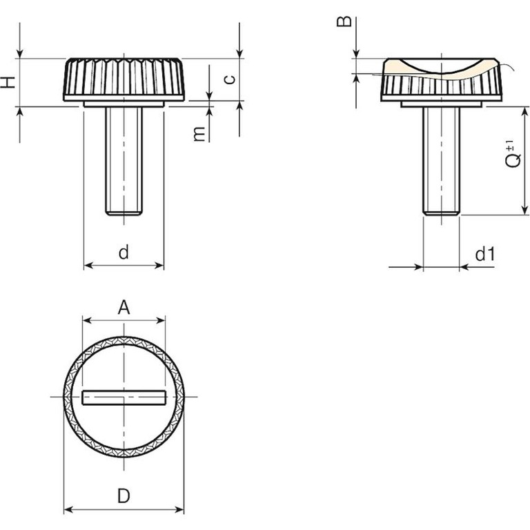 | Code | art. | D | H | d | m | c | A | B | LM | d1 6g | Q | Gewicht (g) |